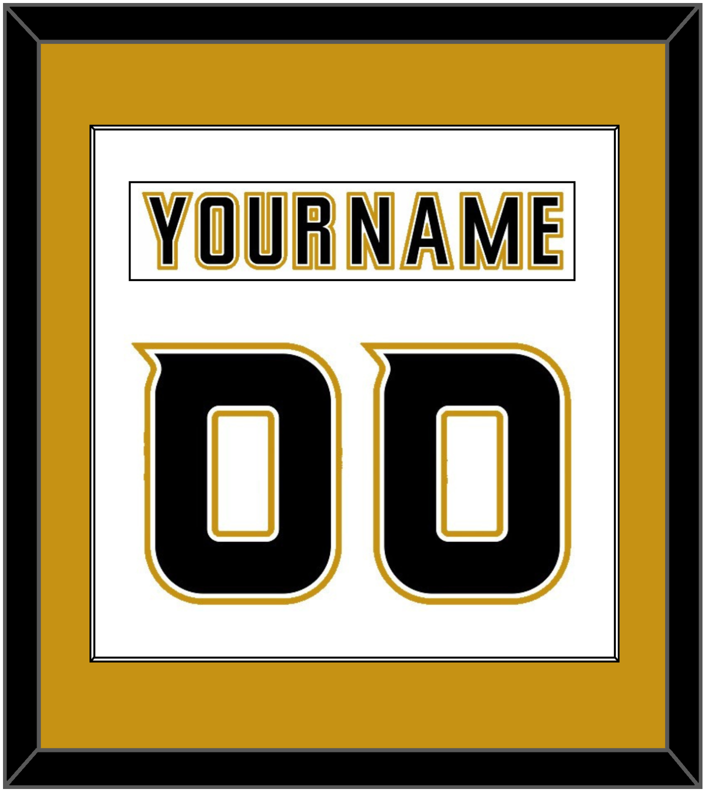 Anaheim Road White Jersey (2006 Through 2014) Nameplate & Number (From The Back Of The Jersey). Single Mat Cut: Gold Mat With White Nameplate And Black Number Mounted On A White Mat. Black Or White Frame.