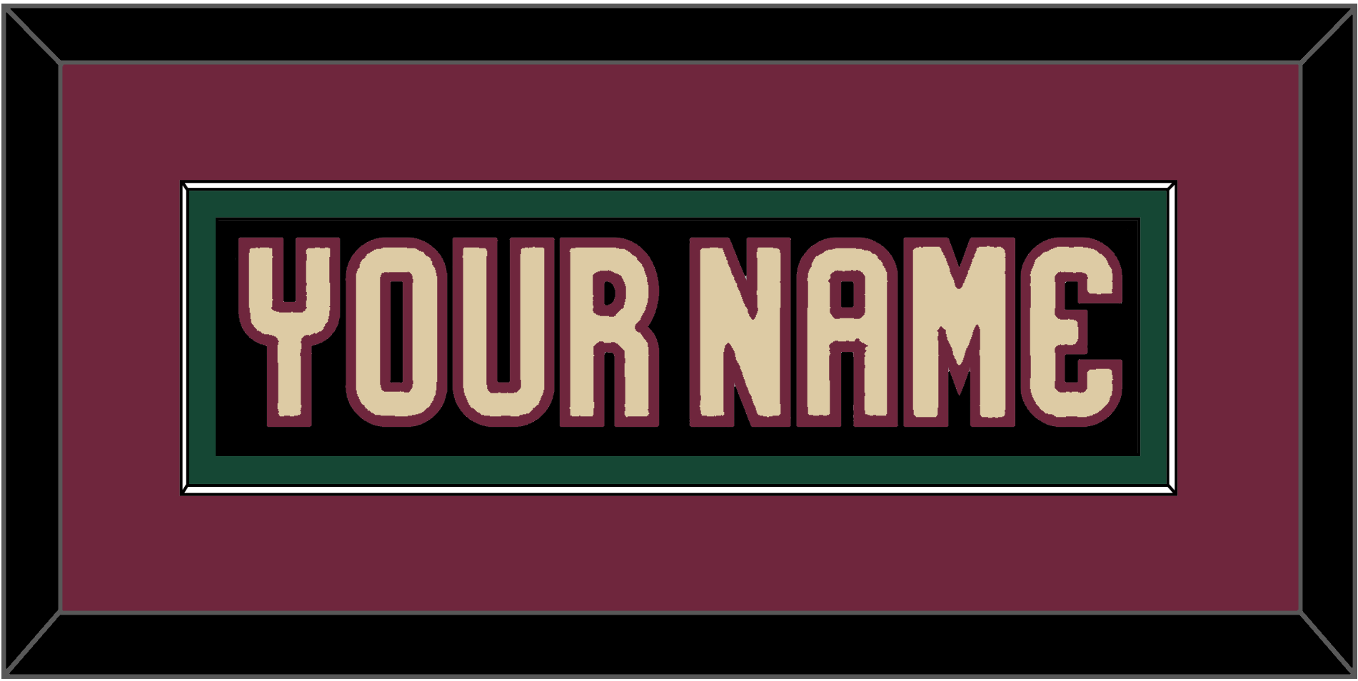 Arizona Home Black Jersey Nameplate. Single Mat: Garnet Mat, Black Nameplate Mounted On Green Mat. Black Or White Frame.
