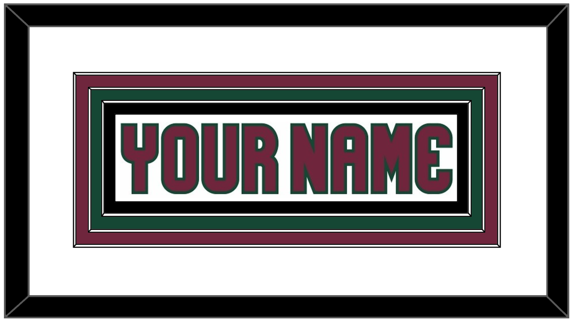 Arizona Road White Jersey Nameplate. Triple Mat: White Mat Over A Garnet Mat, Over A Green Mat. White Nameplate Mounted On A Black Mat. Black Frame.