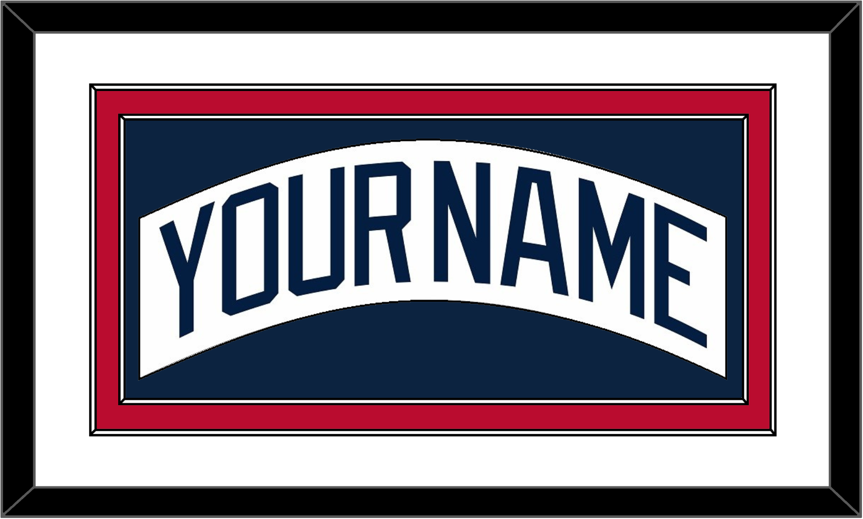 Atlanta Home White Jersey Nameplate (1987 Through 2004). Double Mat: White Mat Over A Red Mat. White Nameplate Mounted On A Blue Mat. Black Frame.