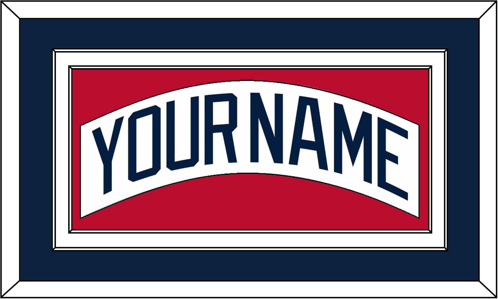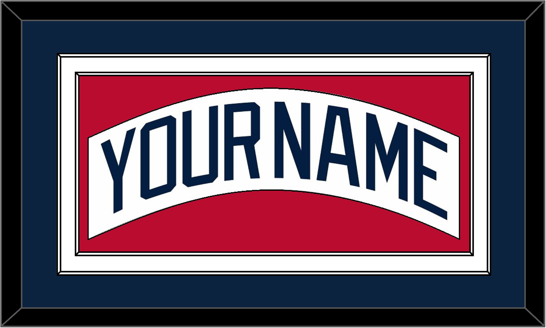Atlanta Home White Jersey Nameplate (1987 Through 2004). Double Mat: Blue Mat Over A White Mat. White Nameplate Mounted On A Red Mat. White Or Black Frame.