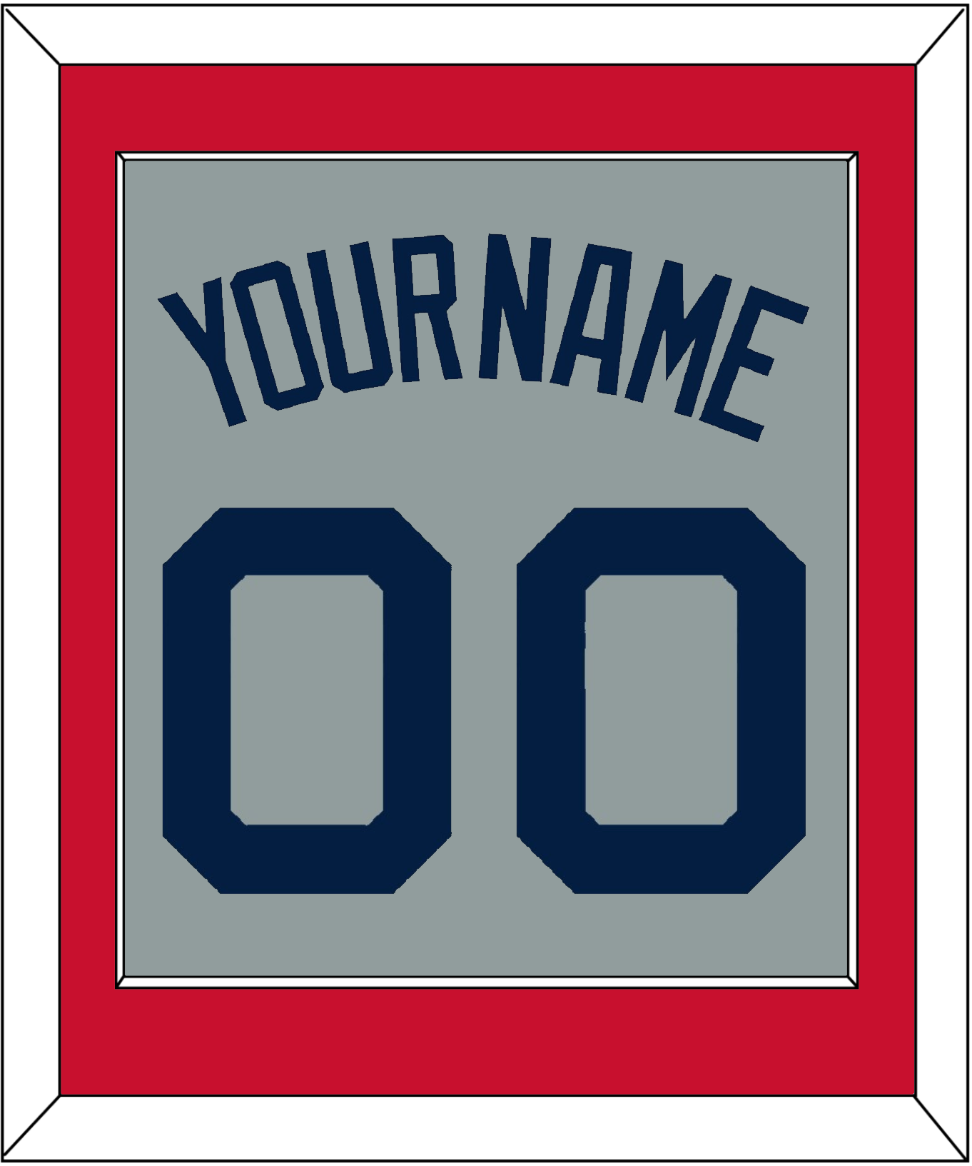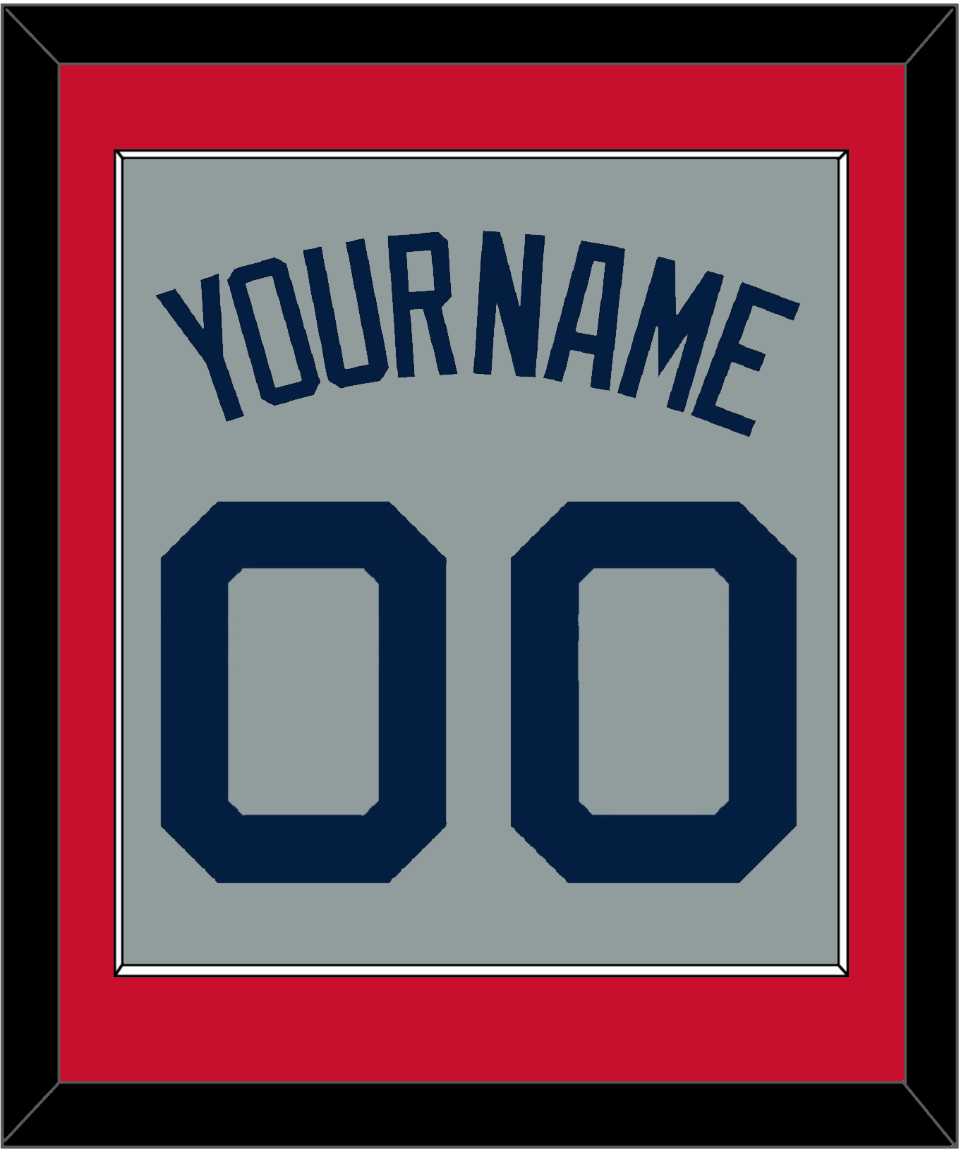 Boston Road Gray Jersey (2009 Through 2013) Name & Number. Red Mat With Blue Name And Number Mounted On Gray Mat. White Or Black Frame.