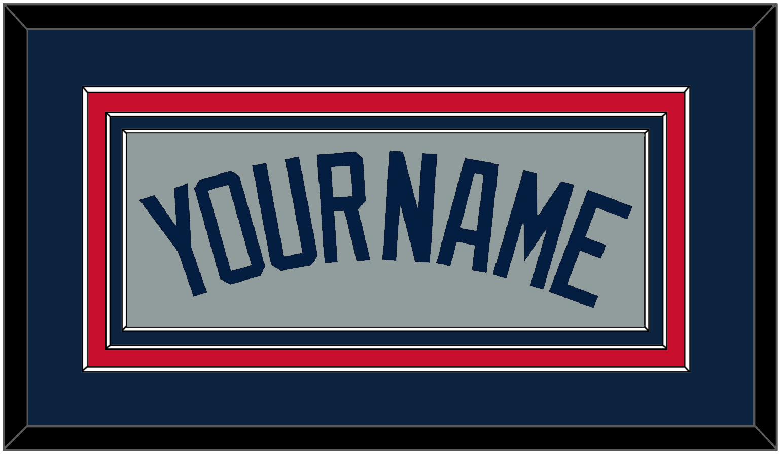 Boston Road Gray Jersey (2009 Through 2013) Name. Triple Mat: Blue Mat Over A Red Mat Over A Blue Mat. Blue Name Mounted On Gray Mat. White Or Black Frame.