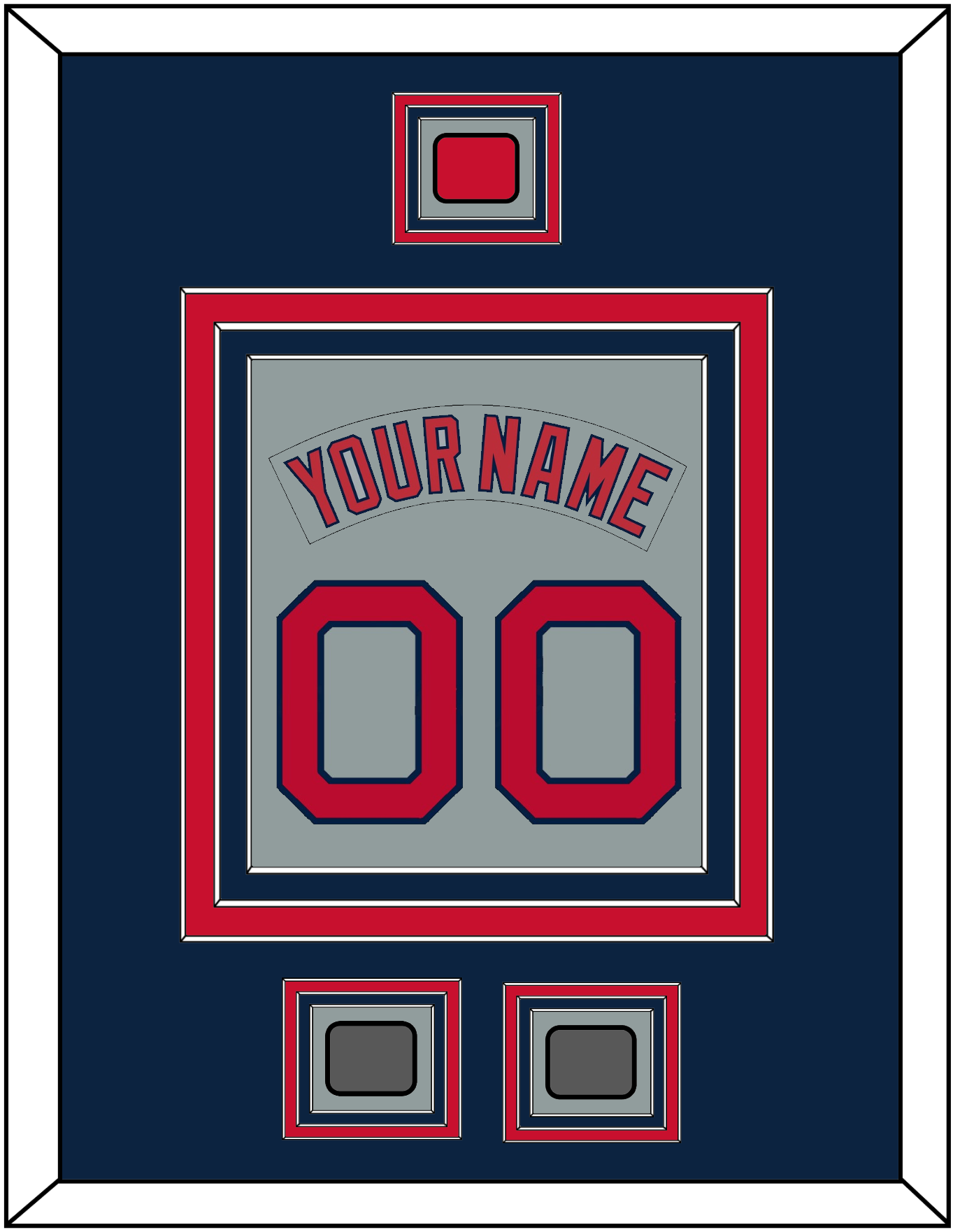 Boston Nameplate & Number (Back) Combined With Logo Patch & 2 World Series Champions Patches - Road Gray (1992-2008) - Triple Mat 3