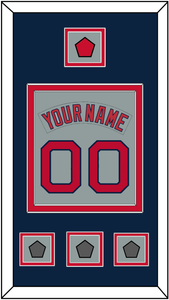 Boston Nameplate & Number (Back) Combined With Logo Patch & 3 World Series Champions Patches - Road Gray (1992-2008) - Double Mat 4