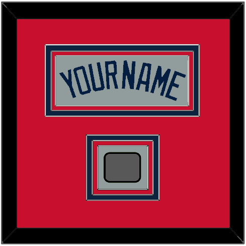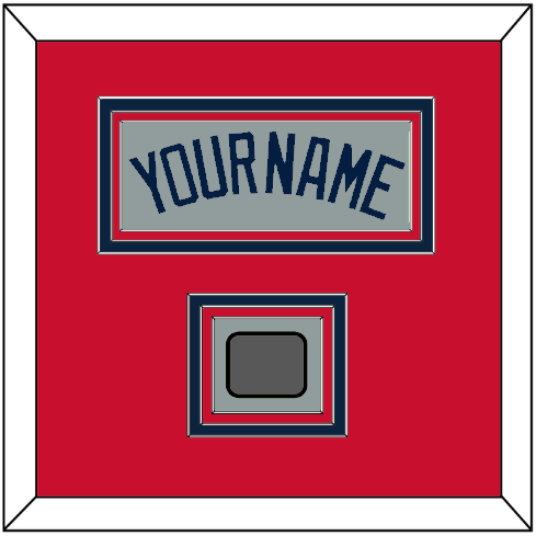Boston Road Gray Jersey (2009 Through 2013) Name With 2004, 2007, 2013 Or 2018 World Series Champions Patch. Triple Mat Cut: Red Mat Over A Blue Mat, Over A Red Mat. Blue Name & Patch Mounted On A Gray Mat. White Or Black Frame.