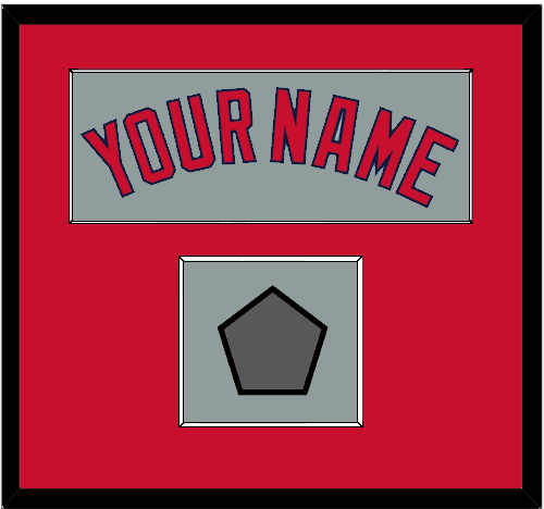 Boston Road Gray Jersey Name With 2004, 2007, 2013 Or 2018 World Series Champions Patch. Single Mat Cut: Red Mat With Red Name & Patch Mounted On A Gray Mat. White Or Black Frame.