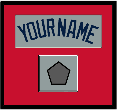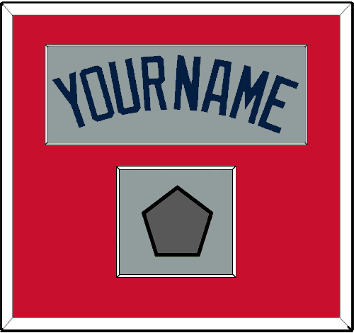 Boston Road Gray Jersey (2009 Through 2013) Name With 2004, 2007, 2013 Or 2018 World Series Jersey Patch. Single Mat Cut: Red Mat With Blue Name & Patch Mounted On A Gray Mat. White Or Black Frame.