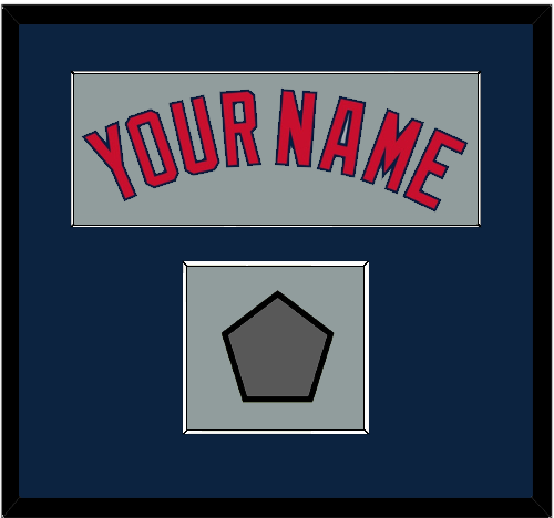 Boston Road Gray Jersey Name With 2004, 2007, 2013 Or 2018 World Series Jersey Patch. Single Mat Cut: Blue Mat With Red Name & Patch Mounted On A Gray Mat. White Or Black Frame.