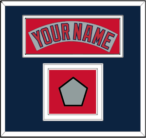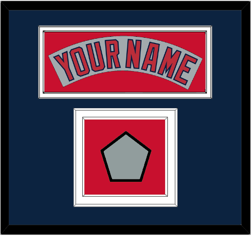 Boston Road Gray Jersey (1992 Through 2008) Nameplate With 2004, 2007, 2013 Or 2018 World Series Champions Patch. Double Mat Cut: Blue Mat Over A White Mat With Gray Nameplate & Patch Mounted On A Red Mat. White Or Black Frame.