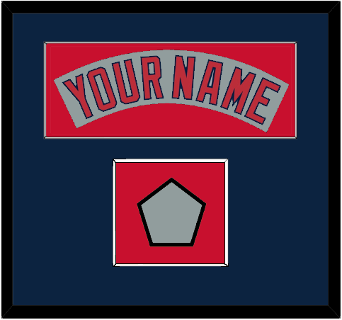 Boston Road Gray Jersey (1992 Through 2008) Nameplate With 2004, 2007, 2013 Or 2018 World Series Champions Patch. Single Mat Cut: Blue Mat With Gray Nameplate & Patch Mounted On A Red Mat. White Or Black Frame.