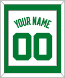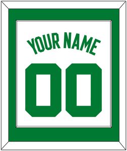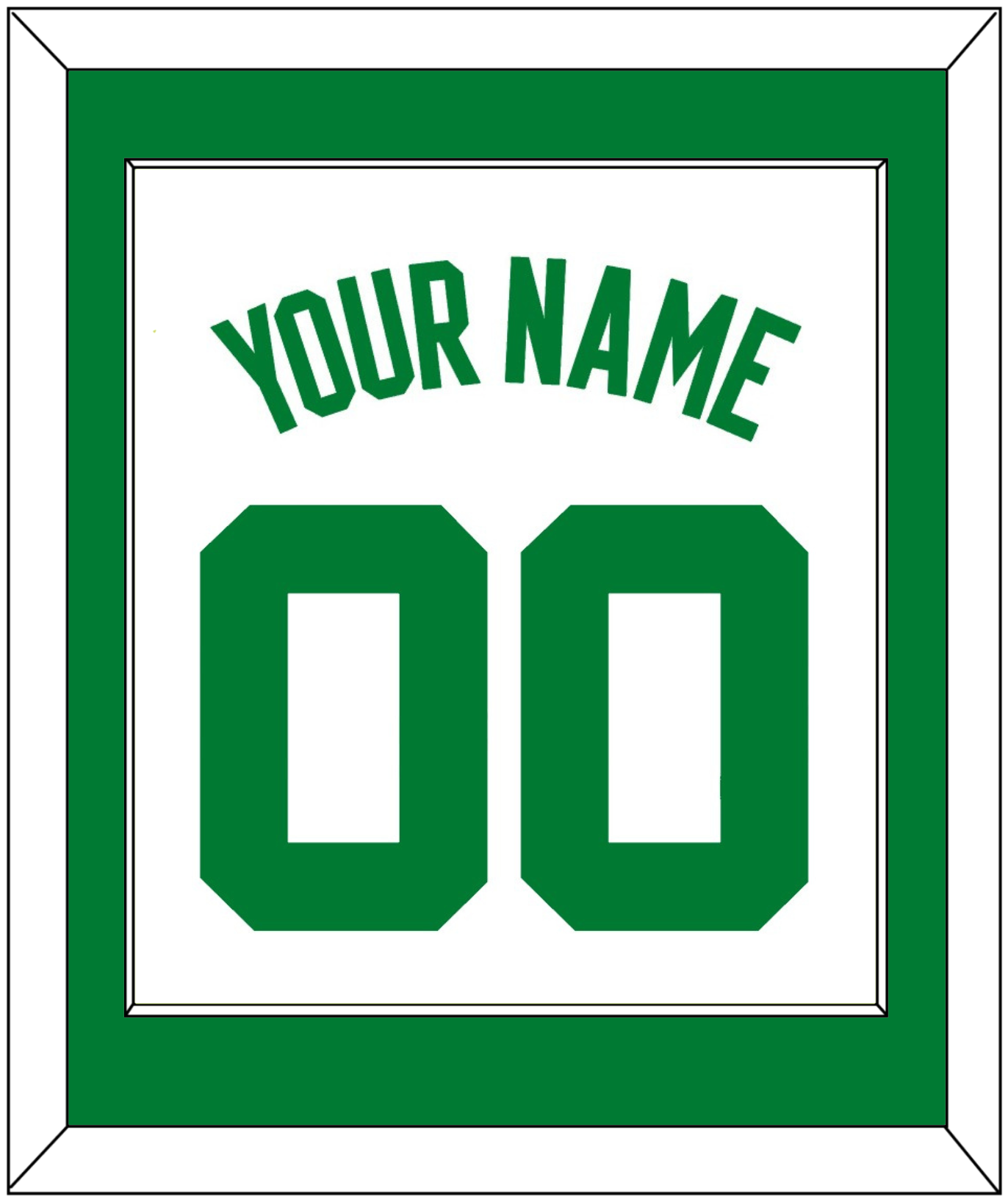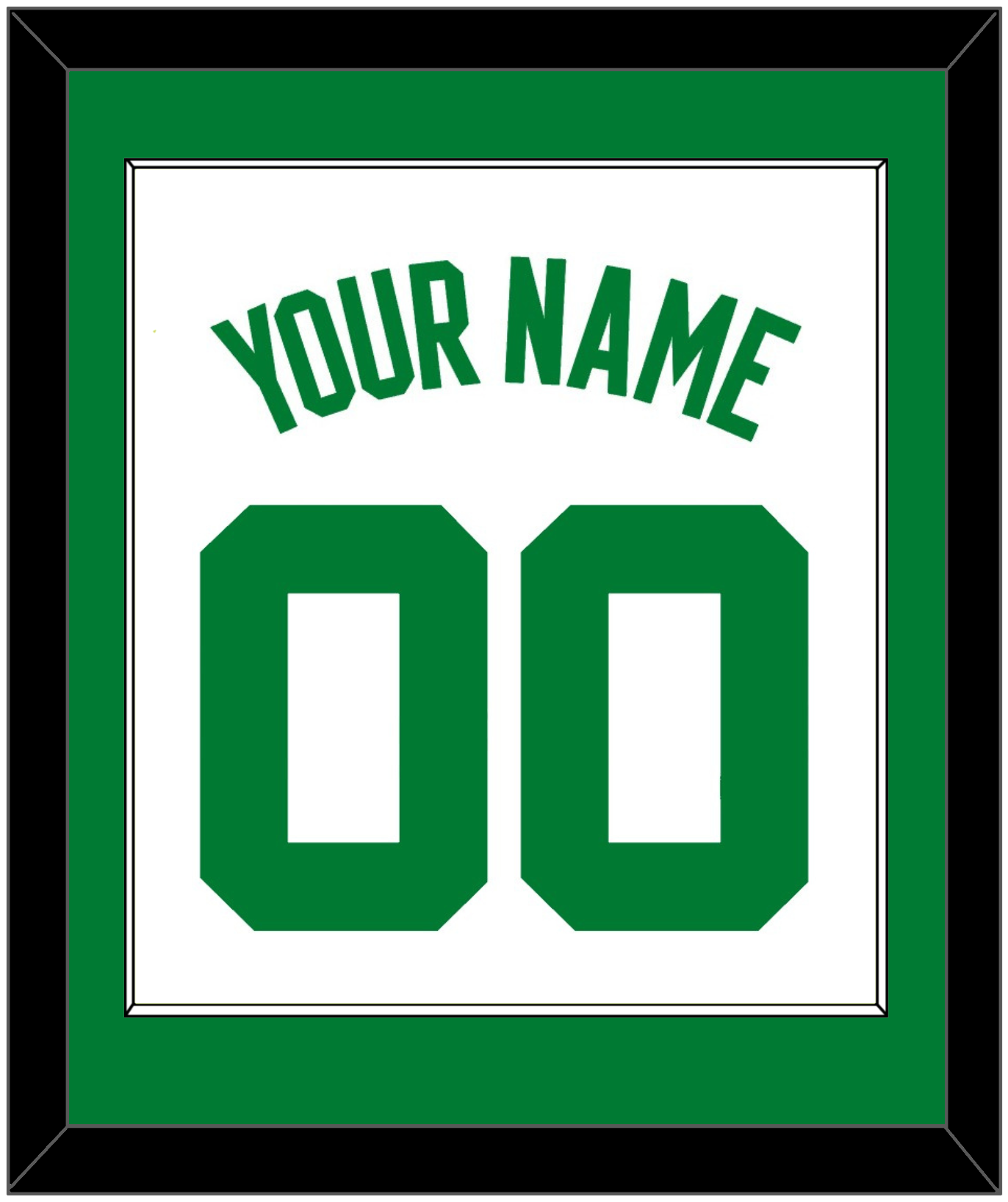 Boston White Association Jersey Name & Number. Single Mat: Green Mat With Name And Green Number Mounted On A White Mat. White Or Black Frame.