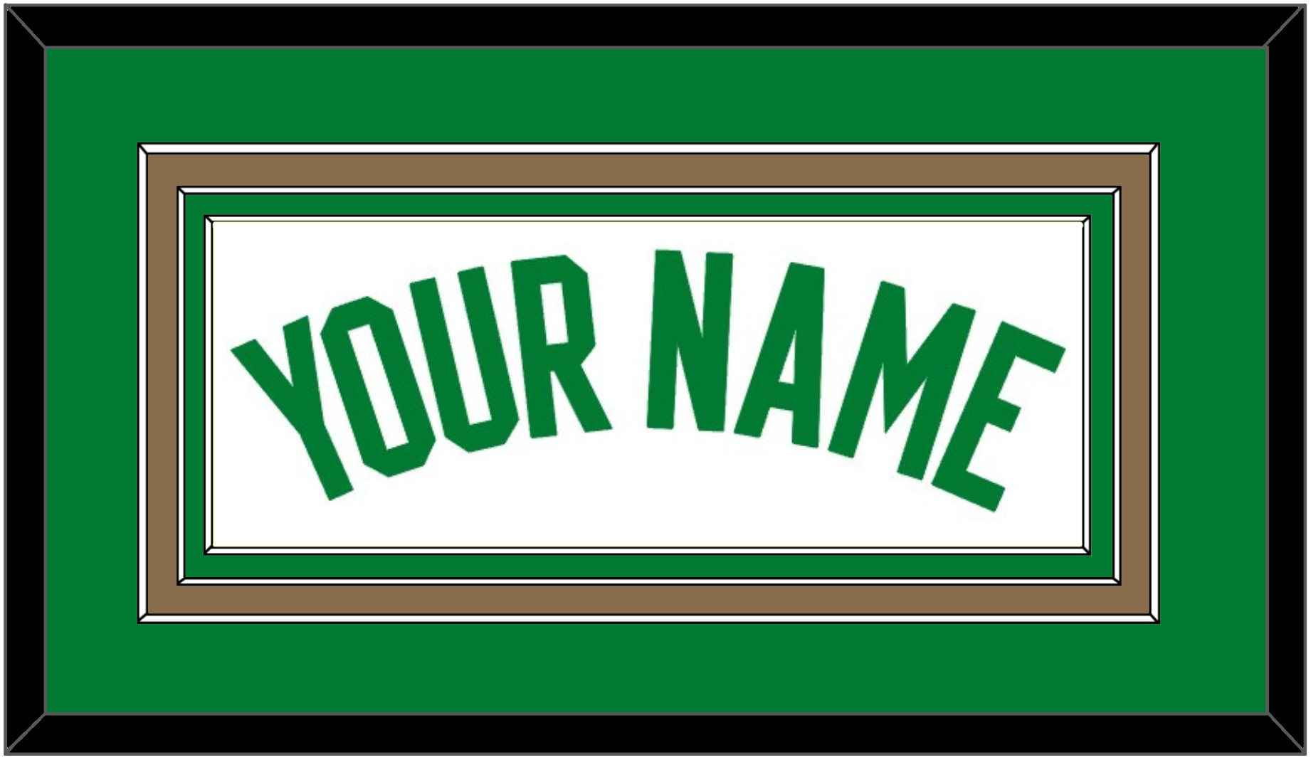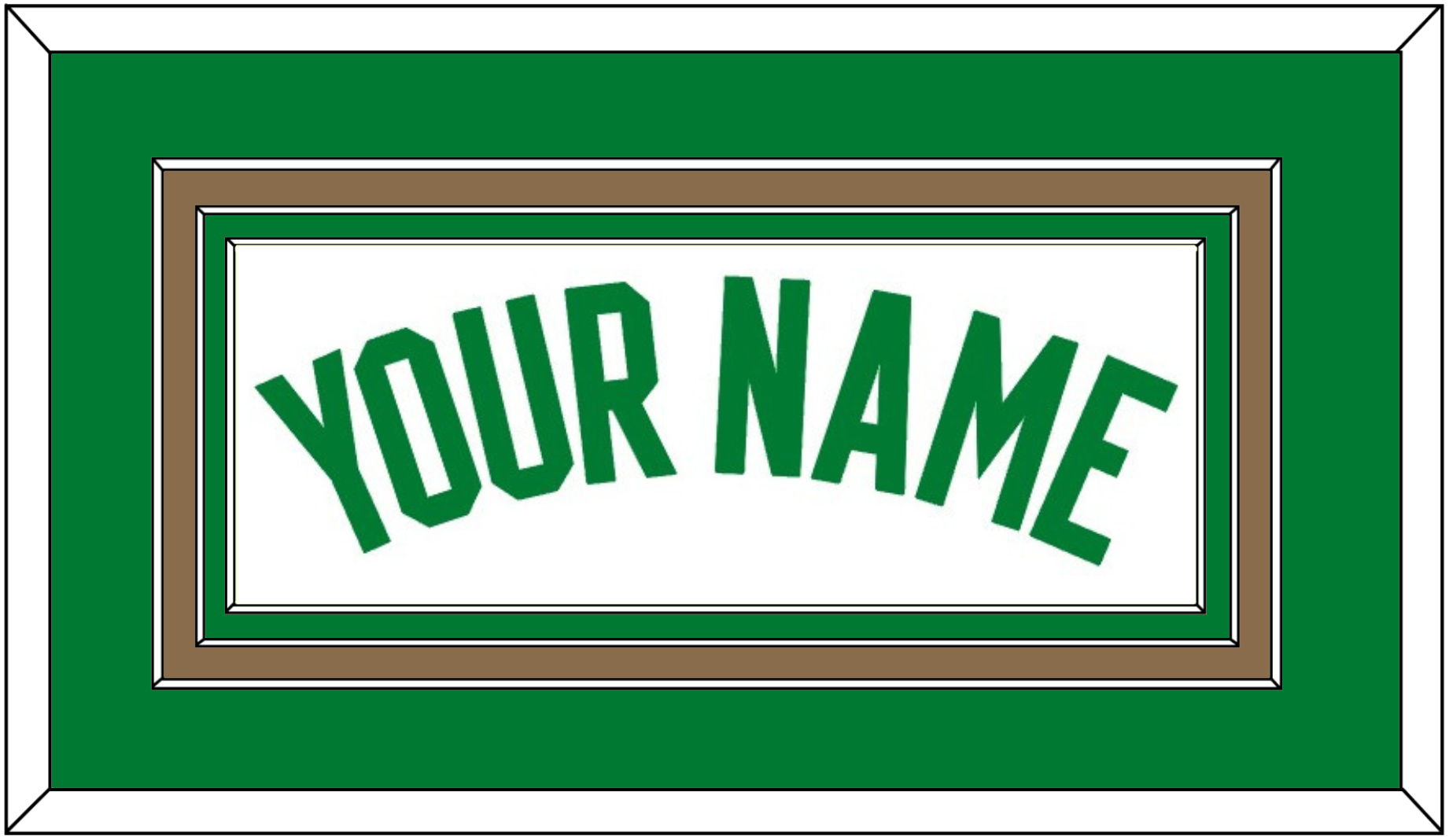 Boston White Association Jersey Name.  Triple Mat:  Green Mat Over A Gold Mat Over A Green Mat.  Green Name Mounted On White Mat.  White Or Black Frame.