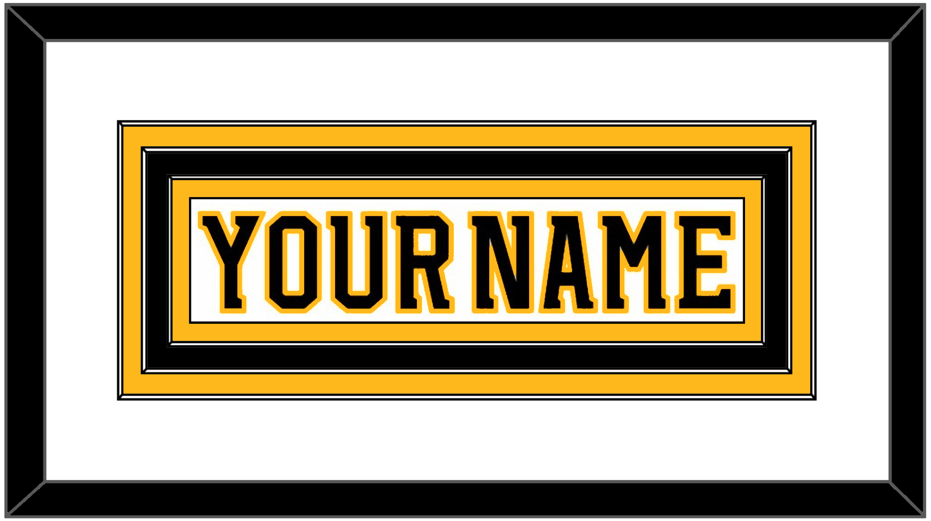 Boston Road White Jersey (2007 Through 2017) Nameplate. Triple Mat: White Mat Over A Gold Mat Over A Black Mat, White Nameplate Mounted On Gold Mat. Black Frame.