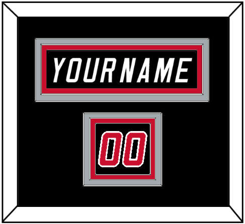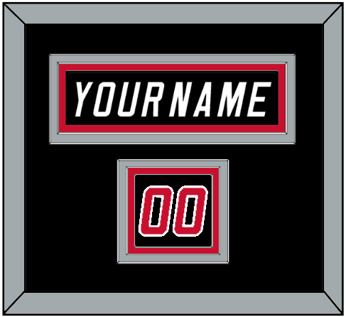 Carolina Alternate Black Jersey (2008 Through 2017) Nameplate & Numbers From Shoulder - The Nameplate Is Double Mat Cut:  Black Mat Over A Silver Mat, Black Nameplate Mounted On Red Mat.  To Match The Jersey, The Numbers Are Triple Mat Cut: Black Mat Over A Silver Mat, Over Red Mat.  Red Numbers Mounted On A Black Mat.  White Or Silver (Metal) Frame.