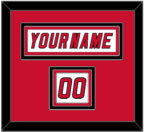 Carolina Home / Road White Jersey (2000 Through 2007) Nameplate & Numbers From Shoulder - The Nameplate Is Double Mat Cut: Red Mat Over A Black Mat, White Nameplate Mounted On Red Mat. To Match The Jersey, The Numbers Are Triple Mat Cut: Red Mat Over A Black Mat, Over Red Mat. Red Numbers Mounted On A White Mat. Black, White Or Silver (Metal) Frame.