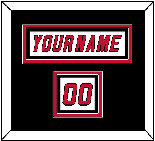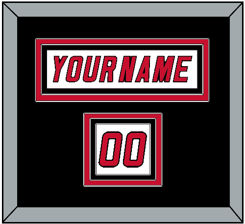 Carolina Home / Road White Jersey (2000 Through 2007) Nameplate & Numbers From Shoulder - The Nameplate Is Double Mat Cut: Black Mat Over A Red Mat, White Nameplate Mounted On Black Mat. To Match The Jersey, The Numbers Are Triple Mat Cut: Black Mat Over A Red Mat, Over Black Mat. Red Numbers Mounted On A White Mat. White Or Silver (Metal) Frame.