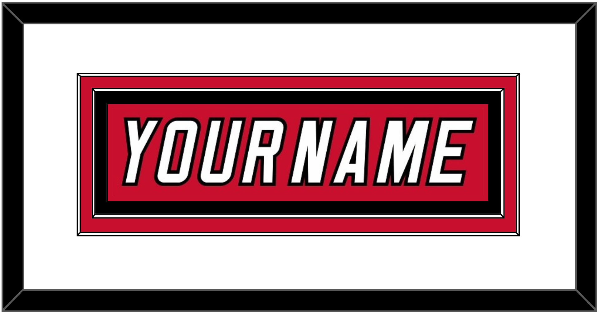 Carolina Road / Home Red Jersey (2000 Through 2007) Nameplate. Double Mat: White Mat Over Red Mat, Red Nameplate Mounted On Black Mat. Black Frame.
