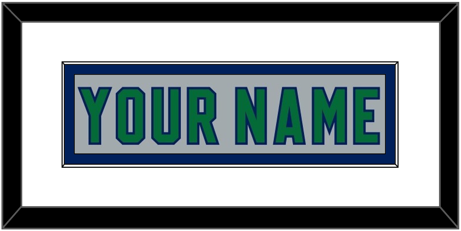Carolina Reverse Retro Gray Jersey (2020 Through 2021) Nameplate. Single Mat: White Mat, Gray Nameplate Mounted On Blue Mat. Black Frame.