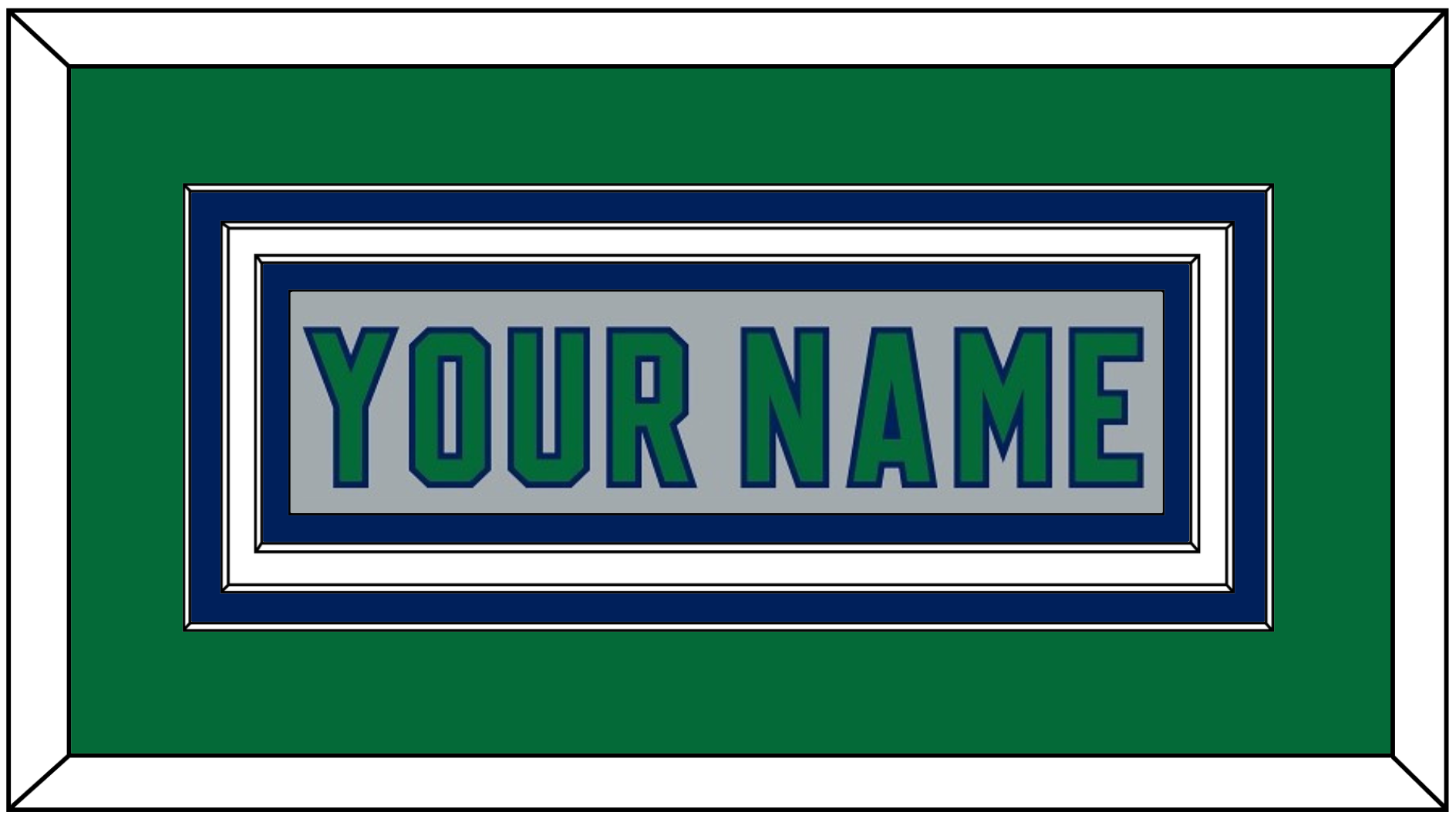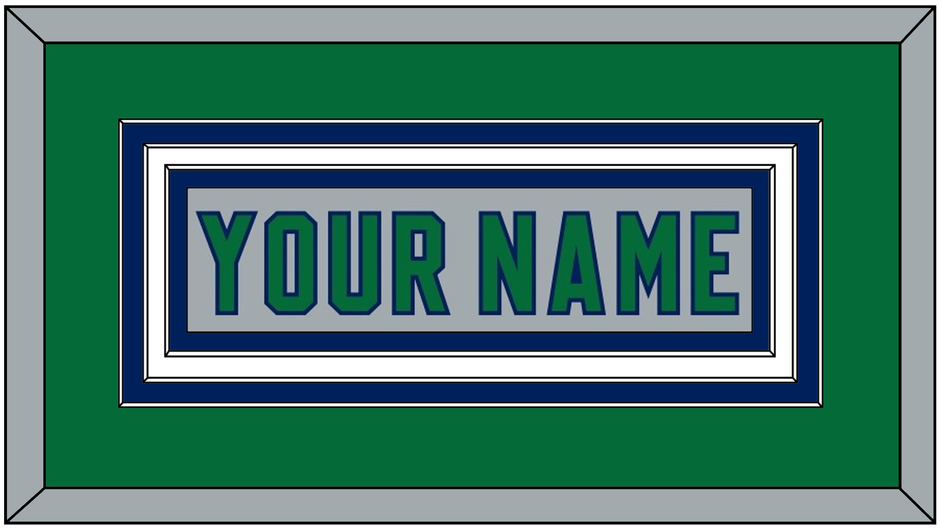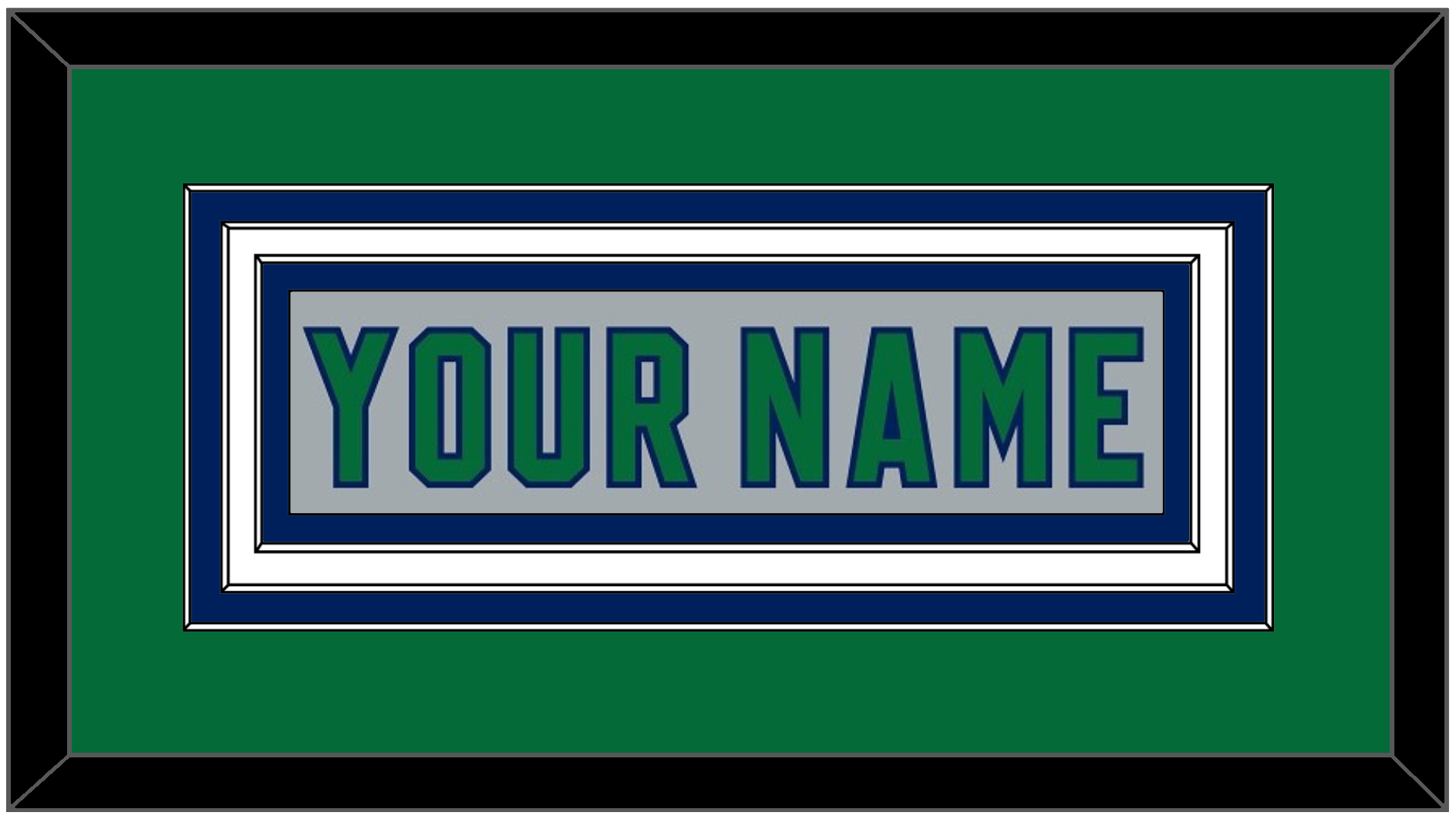 Carolina Reverse Retro Gray Jersey (2020 Through 2021) Nameplate. Triple Mat: Green Mat Over A Blue Mat Over A White Mat, Gray Nameplate Mounted On Blue Mat. White, Black Or Silver (Metal) Frame.