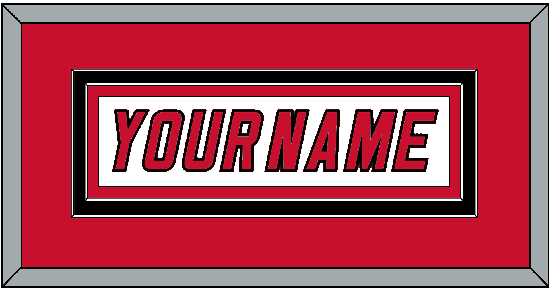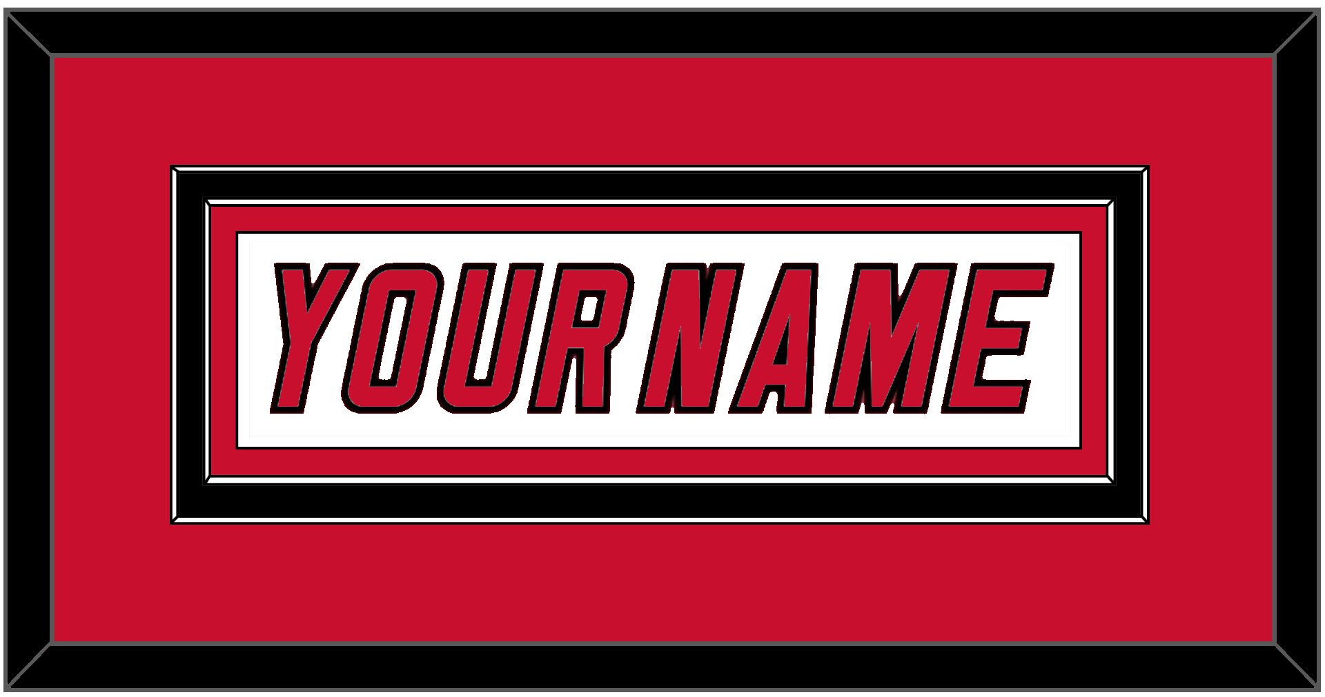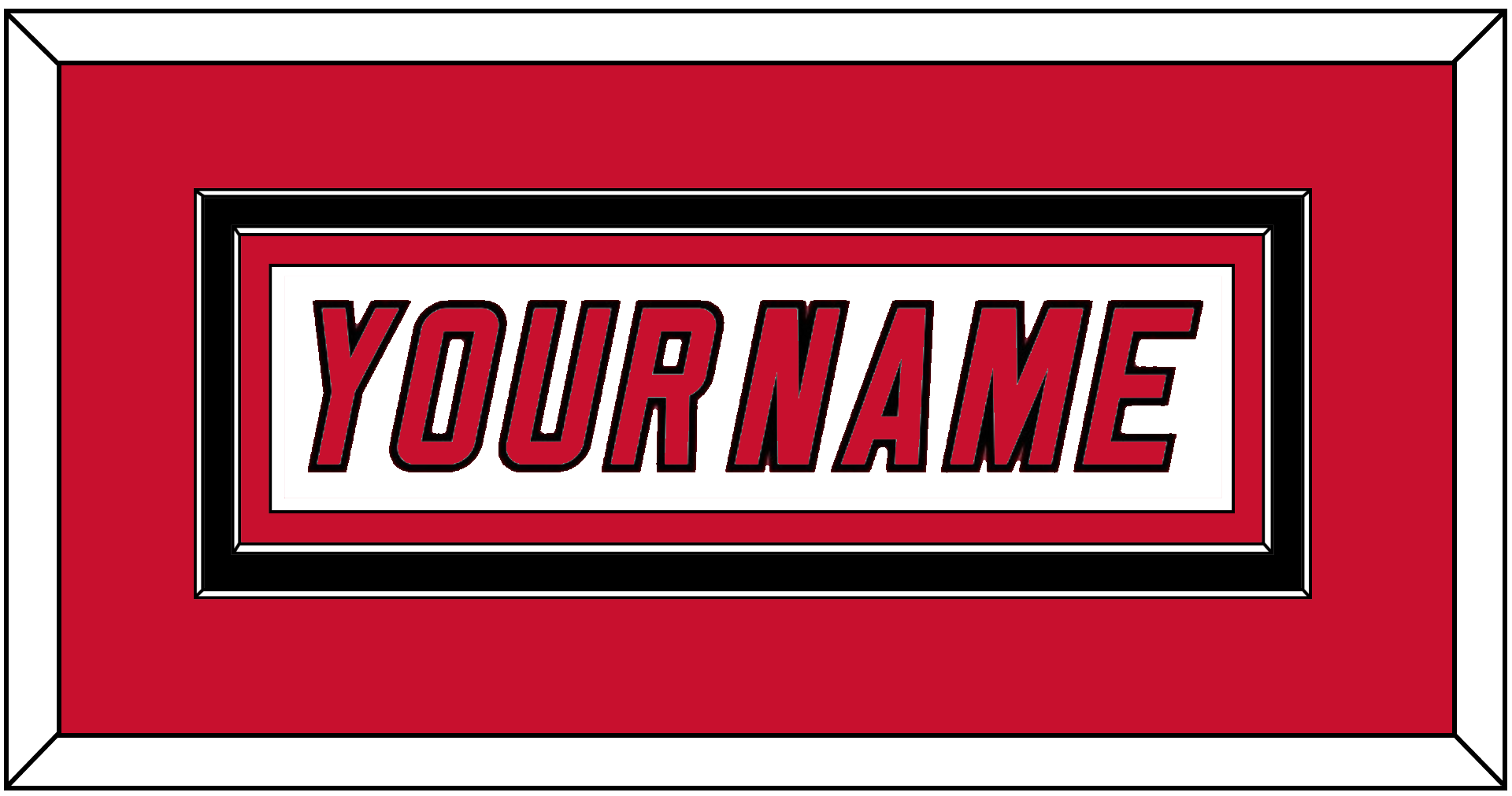 Carolina Home / Road White Jersey (2000 Through 2007) Nameplate. Double Mat: Red Mat Over A Black Mat, White Nameplate Mounted On Red Mat. Black, White Or Silver (Metal) Frame.