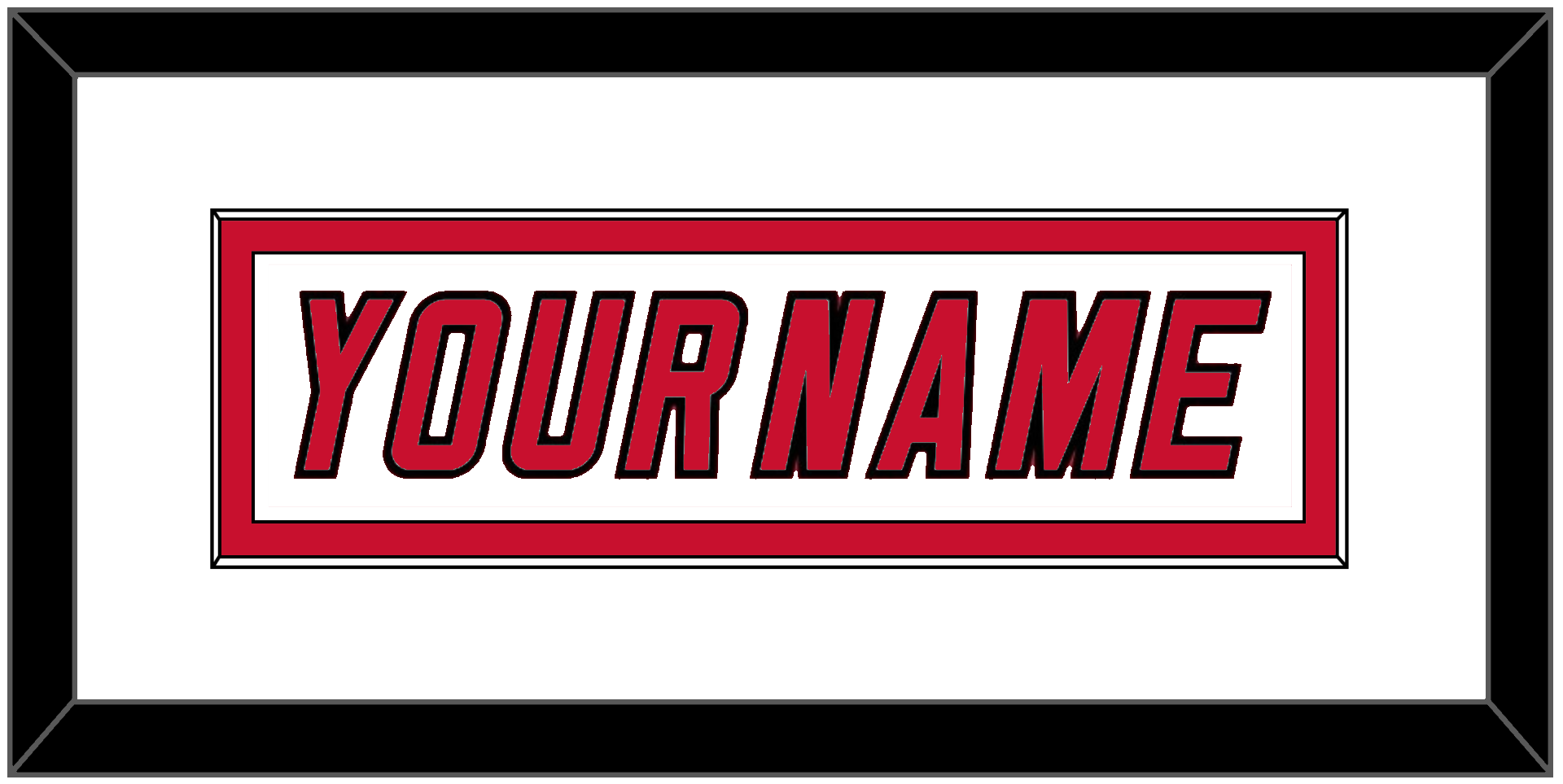Carolina Home / Road White Jersey (2000 Through 2007) Nameplate. Single Mat: White Mat, White Nameplate Mounted On Red Mat. Black Frame.