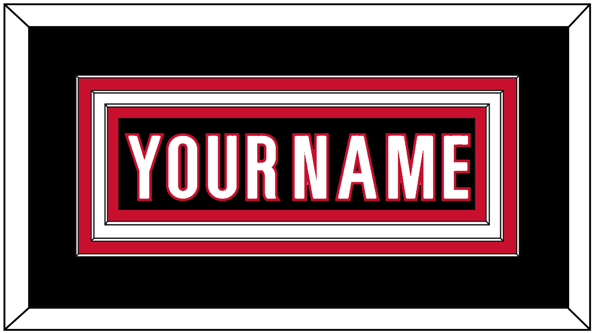 Carolina Home Black Jersey (2022 Through 2023) Nameplate. Triple Mat: Black Mat Over A Red Mat Over A White Mat, Black Nameplate Mounted On Red Mat. White Frame.