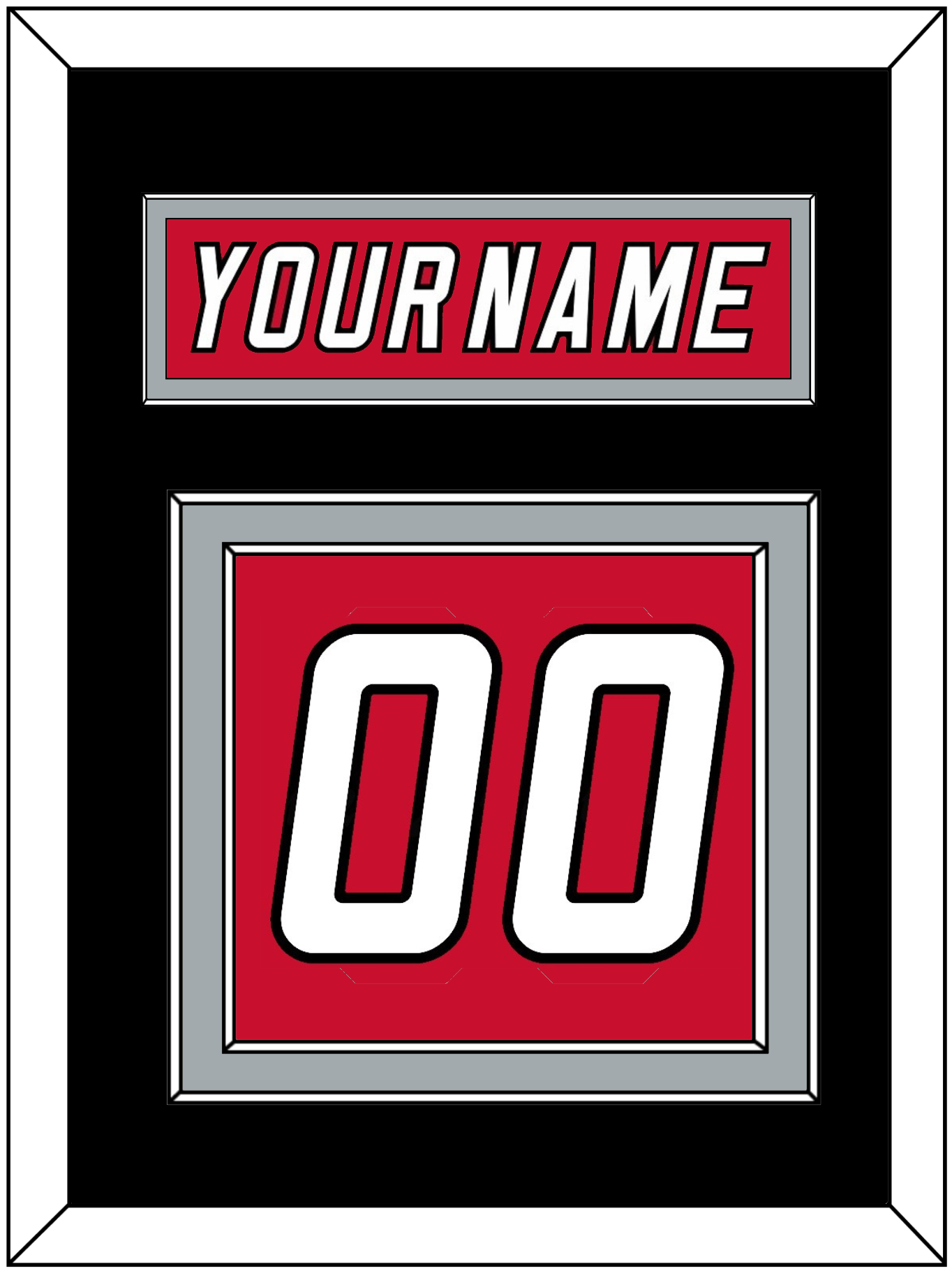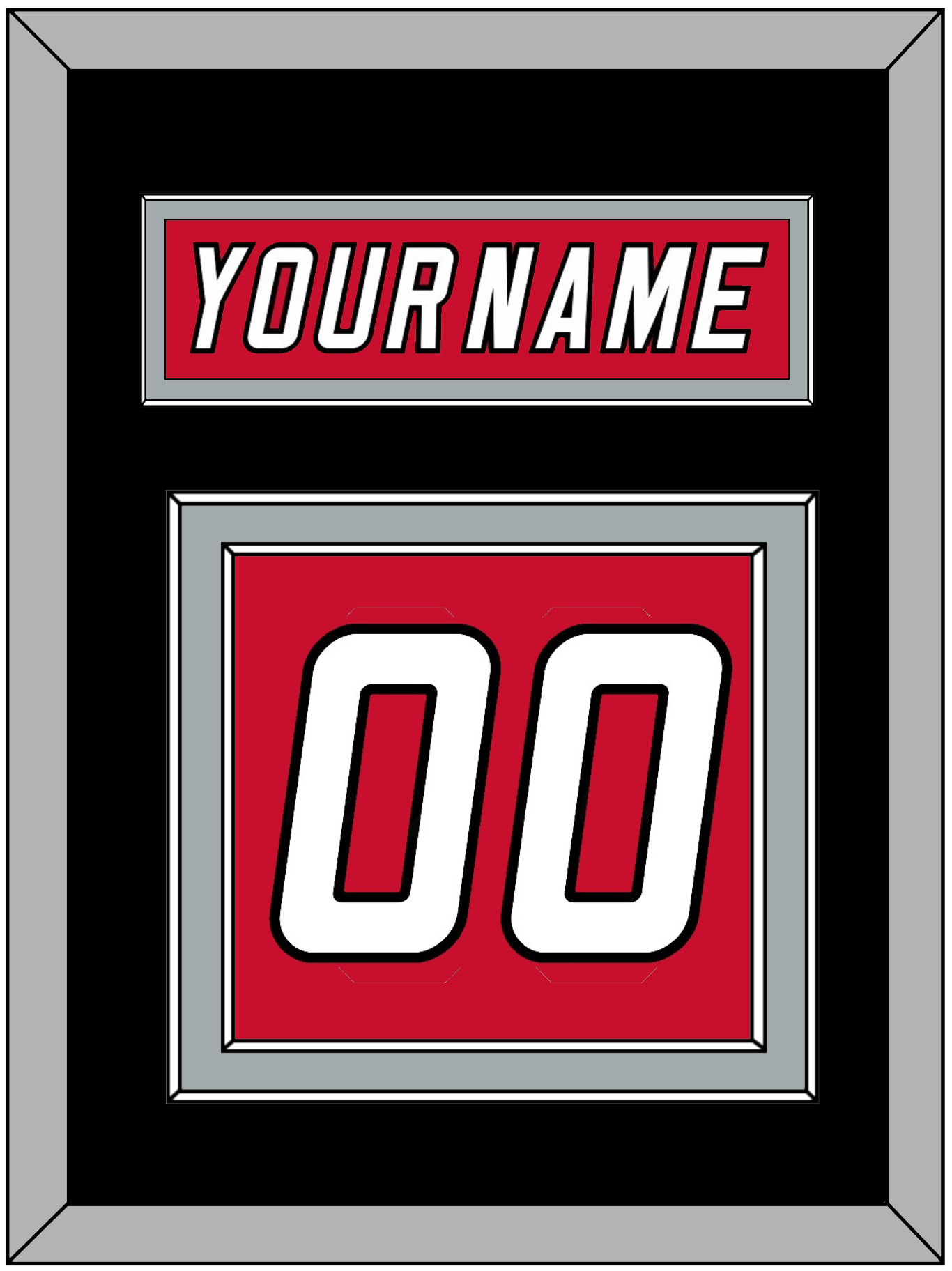 Carolina Alternate Red Jersey (2022 Through 2023) Nameplate & Numbers (From The Back Of The Jersey). Nameplate Is Single Mat Cut: Black Mat With Red Nameplate Mounted On A Silver Mat. To Match The Jersey, Number Is Double Mat Cut: Black Mat Over A Silver Mat, White Number Mounted On A Red Mat. White Or Silver (Metal) Frame.