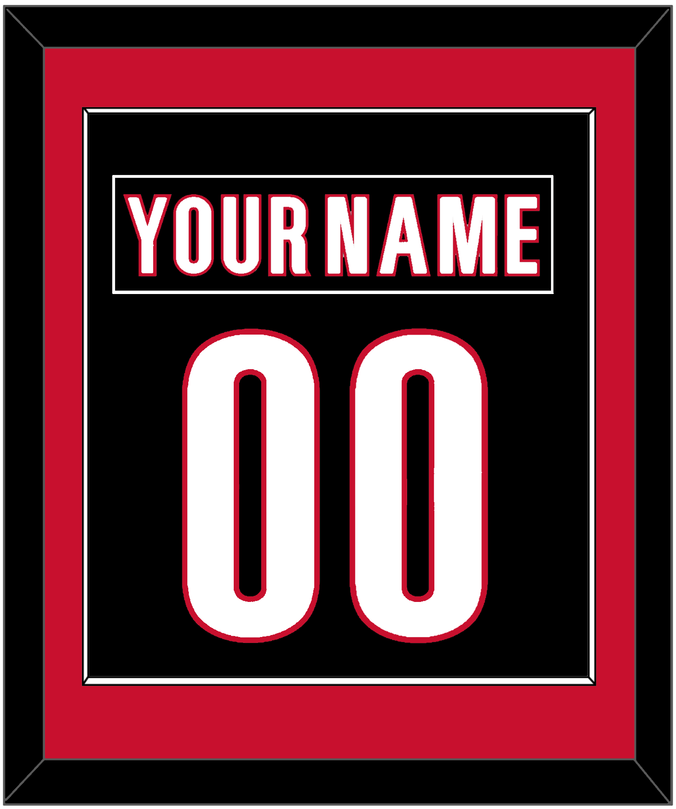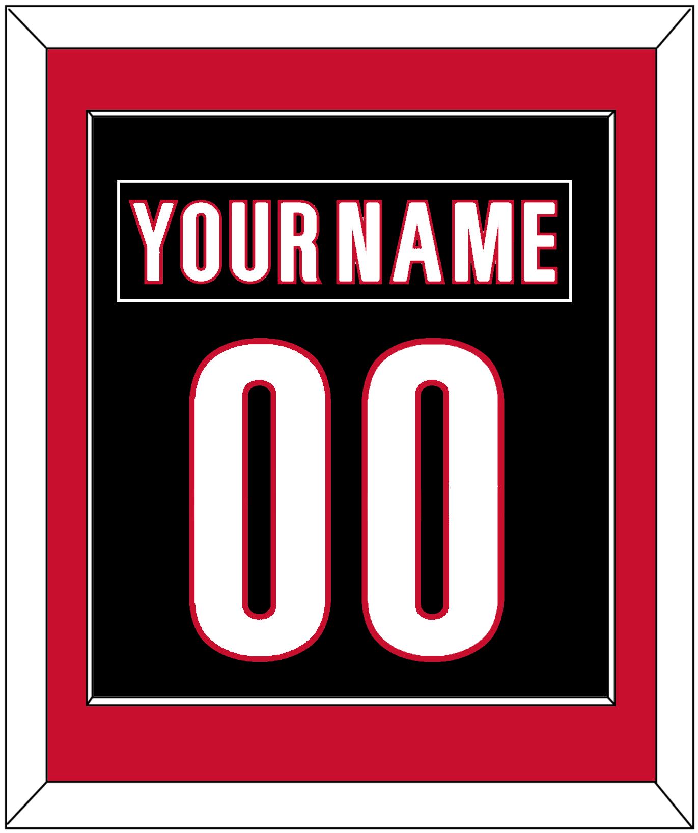 Carolina Alternate Black Jersey (2018 Through 2022) Nameplate & Number (From The Back Of The Jersey). Single Mat Cut: Red Mat With Black Nameplate And White Number Mounted On A Black Mat. Black Or White Frame.