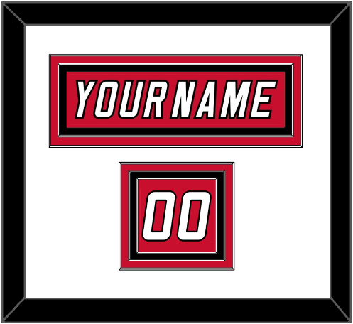 Carolina Home Red Jersey (2007 Through 2013) Nameplate & Numbers From Shoulder - The Nameplate Is Double Mat Cut: White Mat Over A Red Mat, Red Nameplate Mounted On Black Mat. To Match The Jersey, The Numbers Are Triple Mat Cut: White Mat Over A Red Mat, Over Black Mat. White Numbers Mounted On A Red Mat. Black Frame.