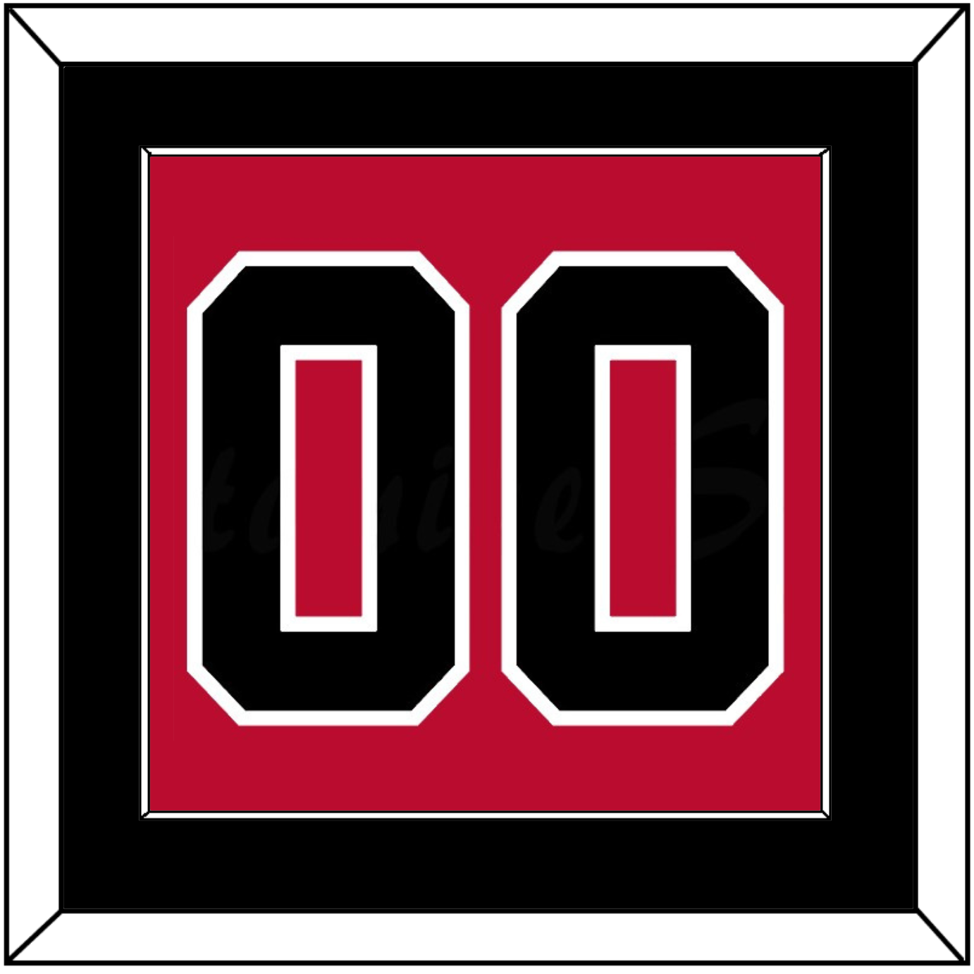 Chicago Road Red Jersey (1986 Through 2017) Number. Single Mat Cut: Black Mat With Black Number Mounted On Red Mat. White Frame.