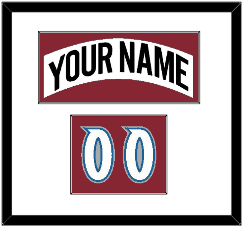 Colorado Home White Jersey (1995 Through 1996) Nameplate & Numbers From Shoulder - White Mat With White Nameplate & White Numbers Mounted On A Burgundy Mat. Black Frame.