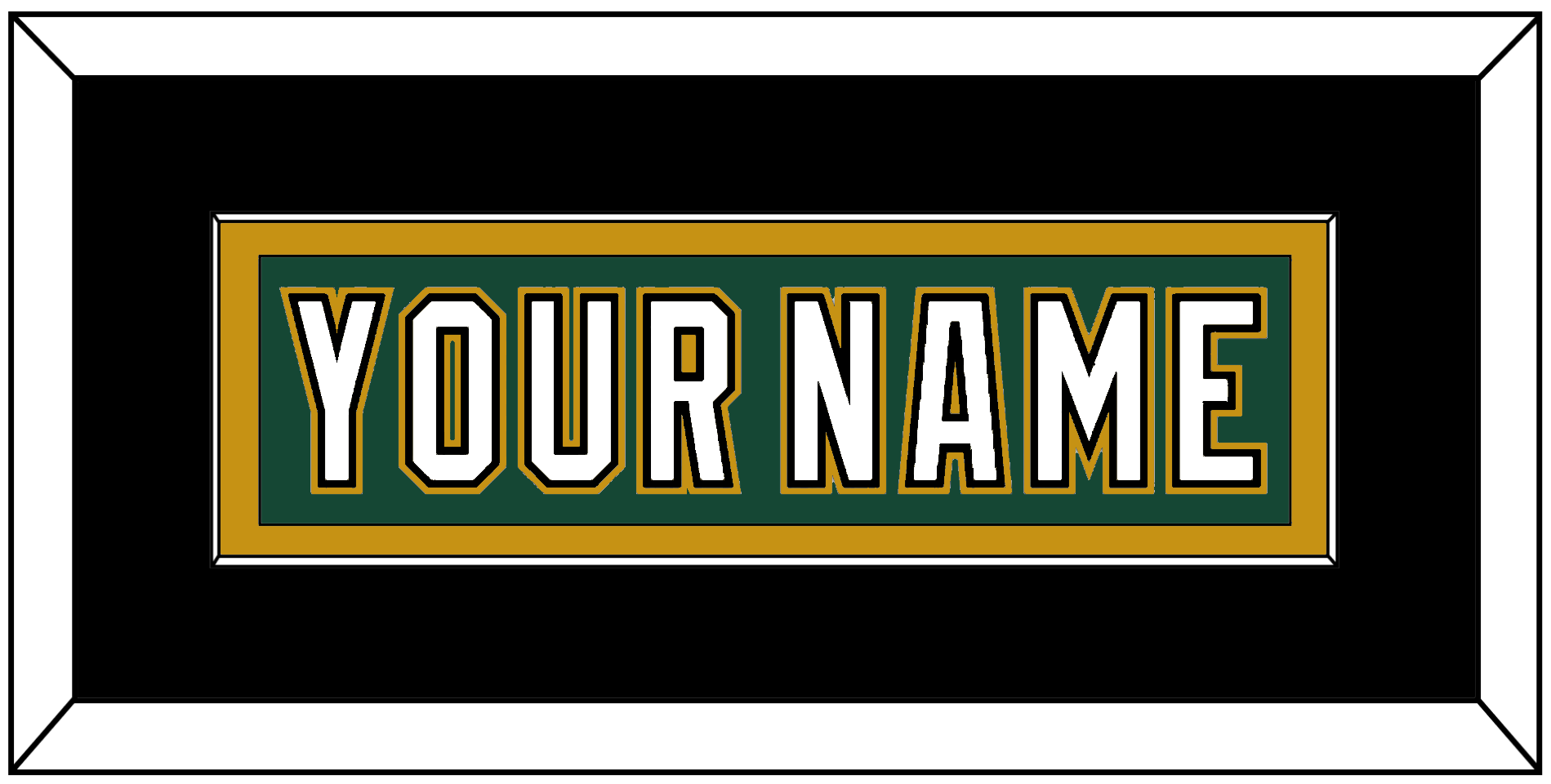 Dallas Alternate Green Jersey (1997 Through 1999) Nameplate. Single Mat: Black Mat, Green Nameplate Mounted On A Gold Mat. White Frame.