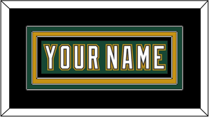 Dallas Alternate Green Jersey (1997 Through 1999) Nameplate. Triple Mat: Black Mat Over A Green Mat Over A Gold Mat, Green Nameplate Mounted On A Black Mat. White Frame.