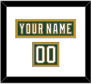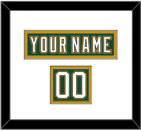 Dallas Alternate Green Jersey (1997 Through 1999) Nameplate & Numbers From Shoulder - The Nameplate Is Single Mat Cut: Green Nameplate Mounted On A Gold Mat. To Match The Jersey, The Numbers Are Double Mat Cut: White Mat Over A Gold Mat, White Number Mounted On A Green Mat. Black Frame.