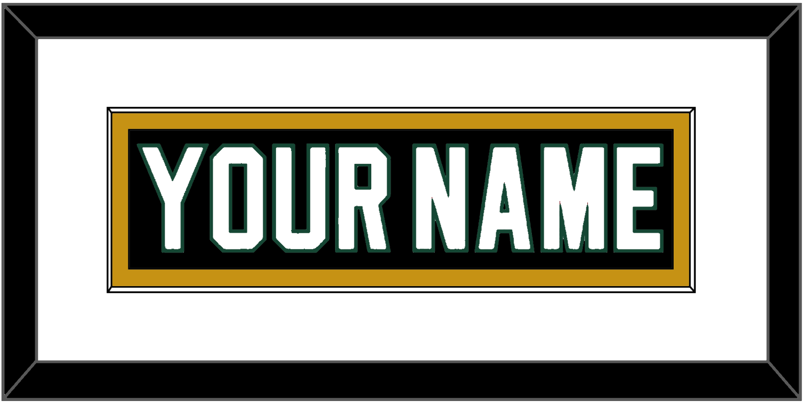 Dallas Road Black Jersey (1994 Through 1999) Nameplate. Single Mat: White Mat, Black Nameplate Mounted On A Gold Mat. Black Frame.