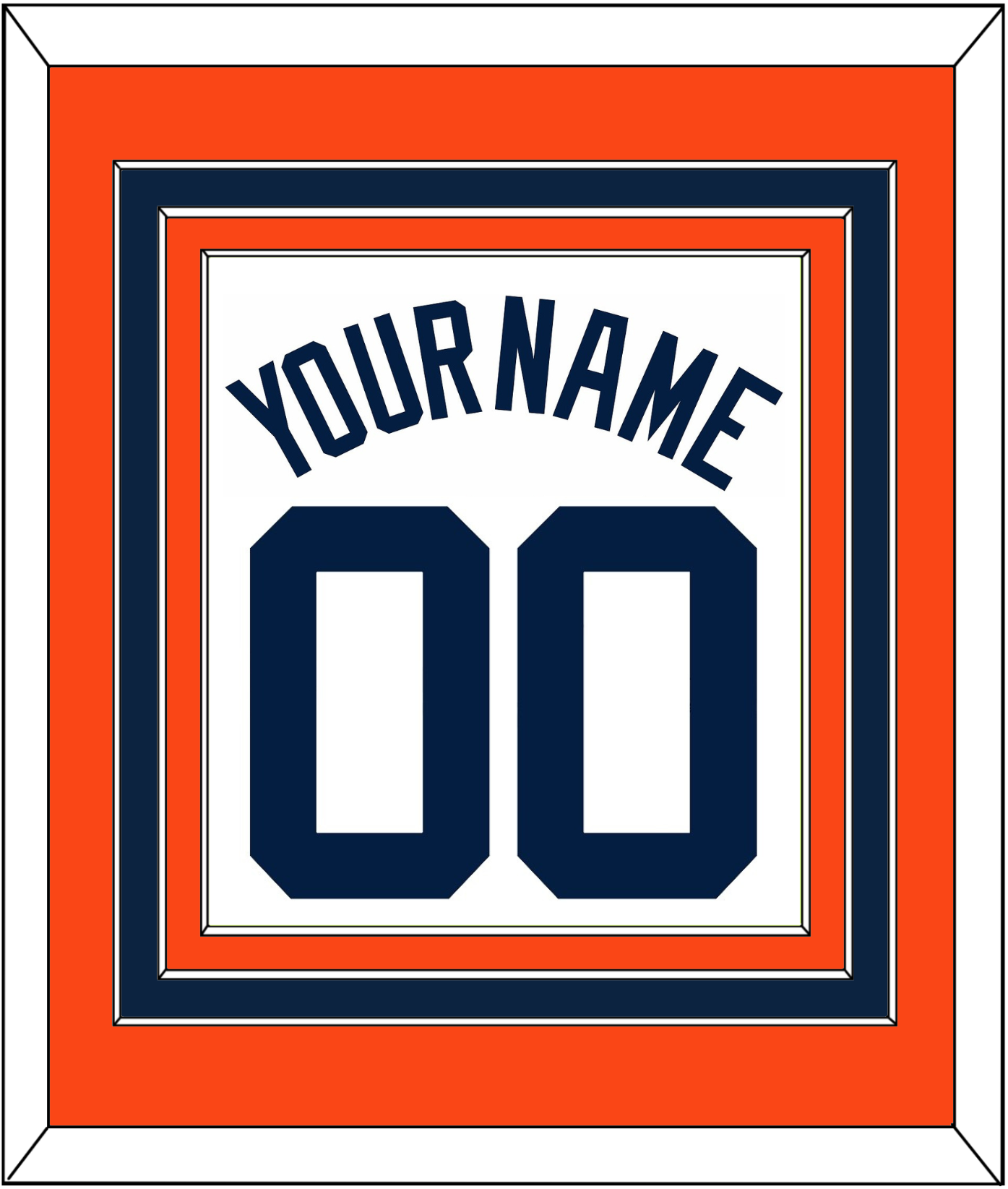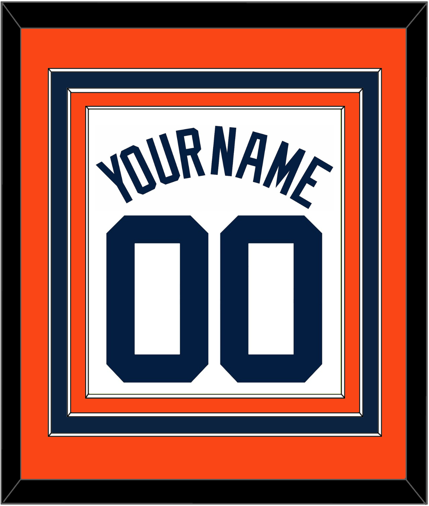 Detroit Home White Jersey (1972 Through 2017) Name & Number. Triple Mat: Orange Mat Over A Blue Mat Over An Orange Mat. Name And Number Mounted On A White Mat. White Or Black Frame.