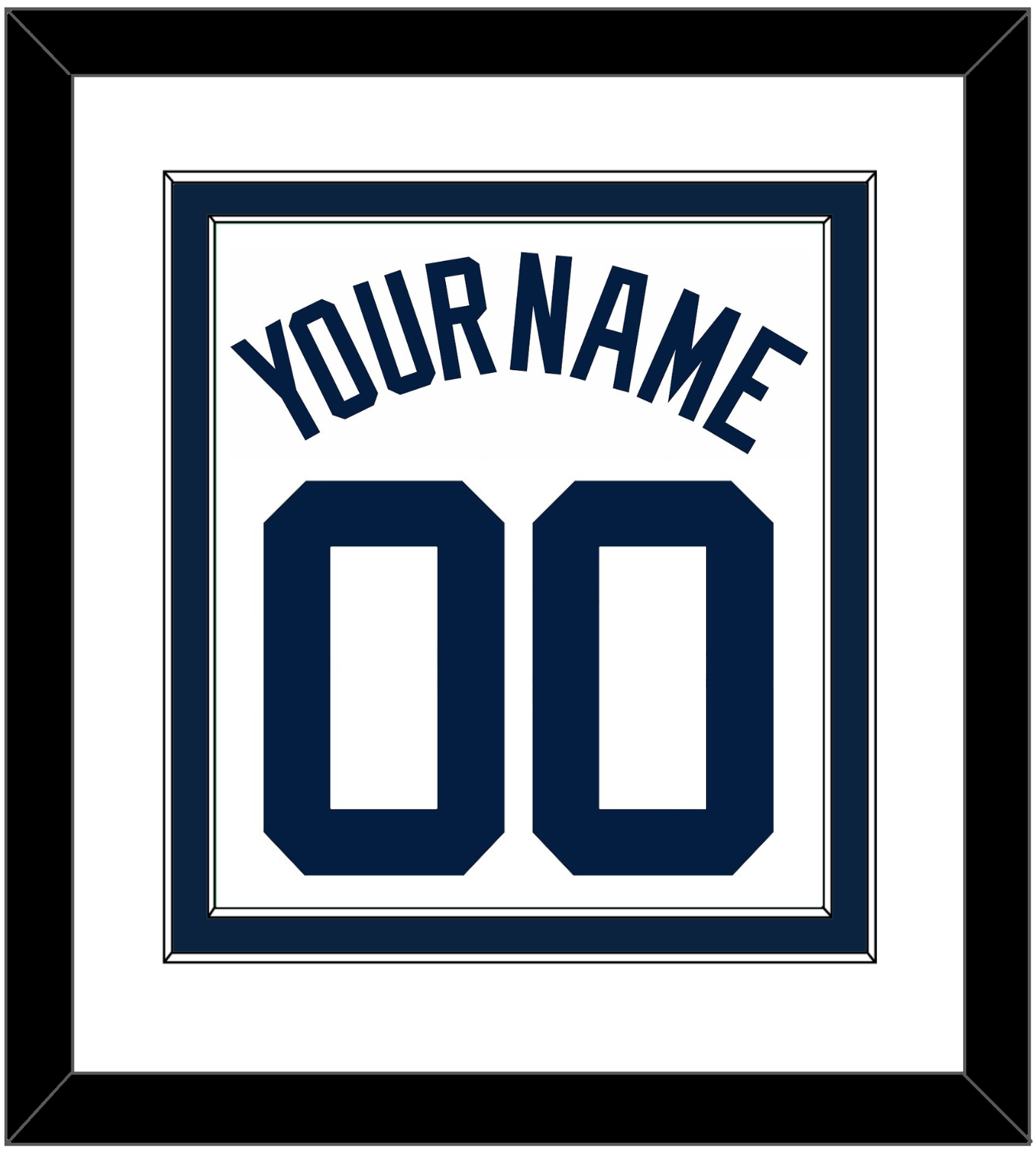 Detroit Home White Jersey (1972 Through 2017) Name & Number. Double Mat: White Mat Over A Blue Mat. Name And Number Mounted On White Mat. Black Frame.