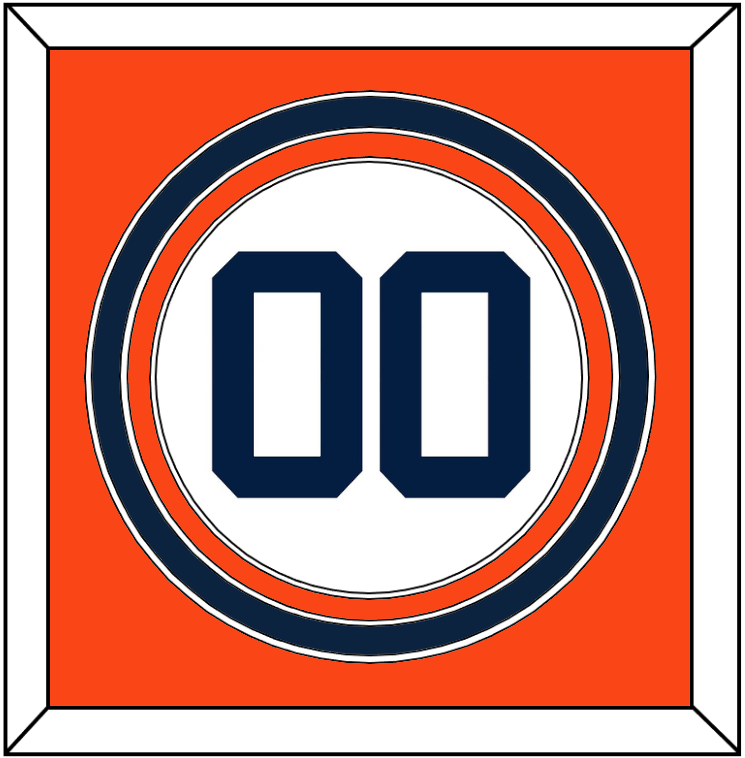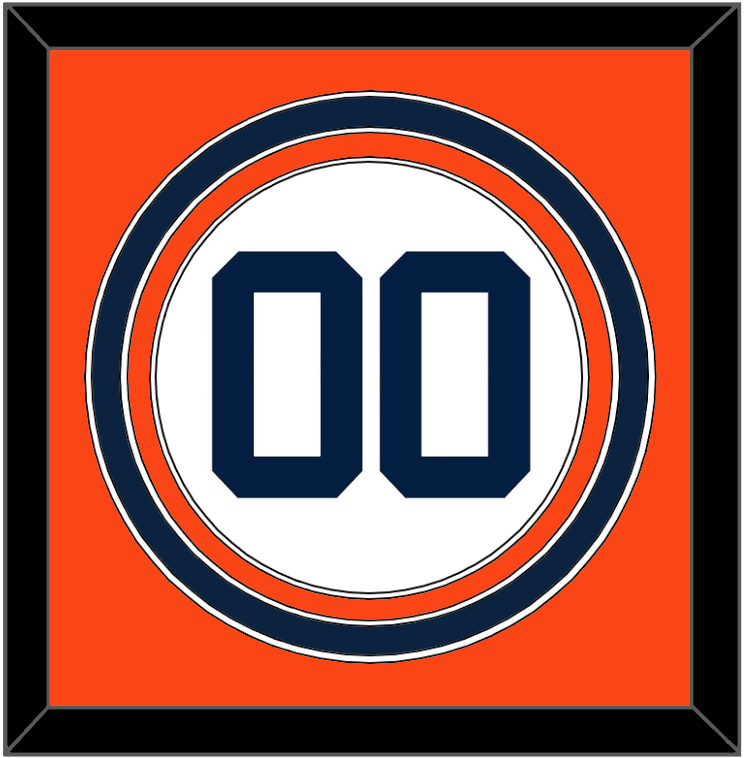 Detroit Home White Jersey (1972 Through 2017) Number. Triple Mat: Orange Mat Over A Blue Mat, Over An Orange Mat. Blue Number Mounted On White Mat. White Or Black Frame.