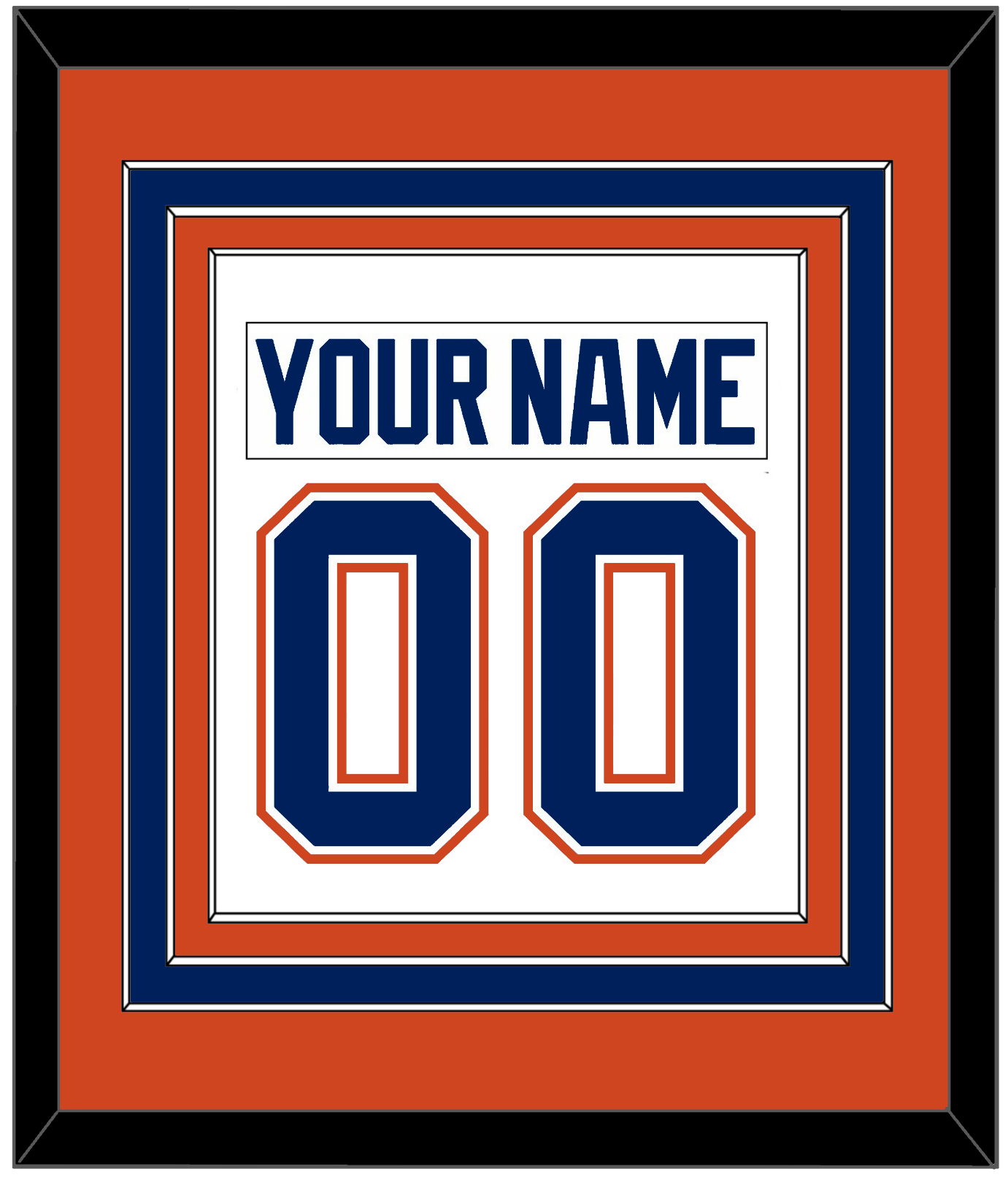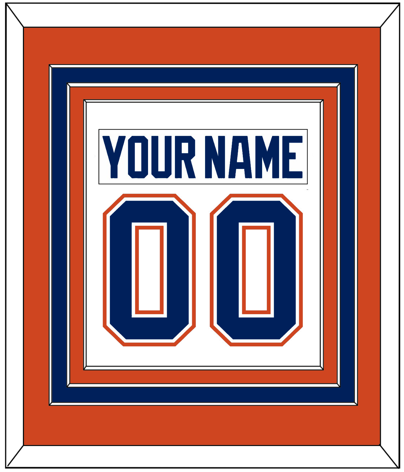 Edmonton Road White Jersey Nameplate & Number (From The Back Of The Jersey). Triple Mat Cut: Orange Mat Over A Blue Mat Over An Orange Mat. White Nameplate And Blue Number Mounted On A White Mat. White Or Black Frame.