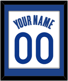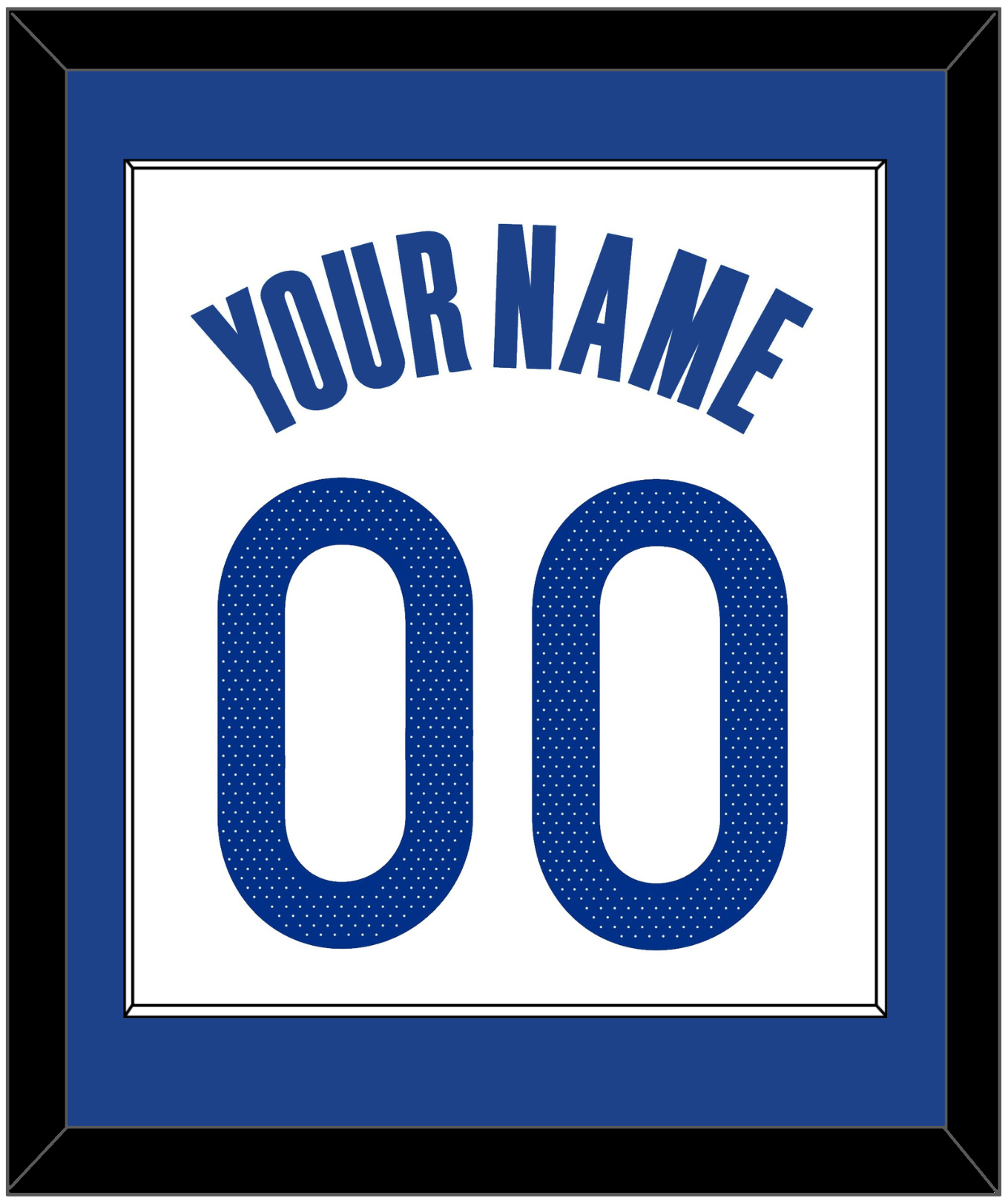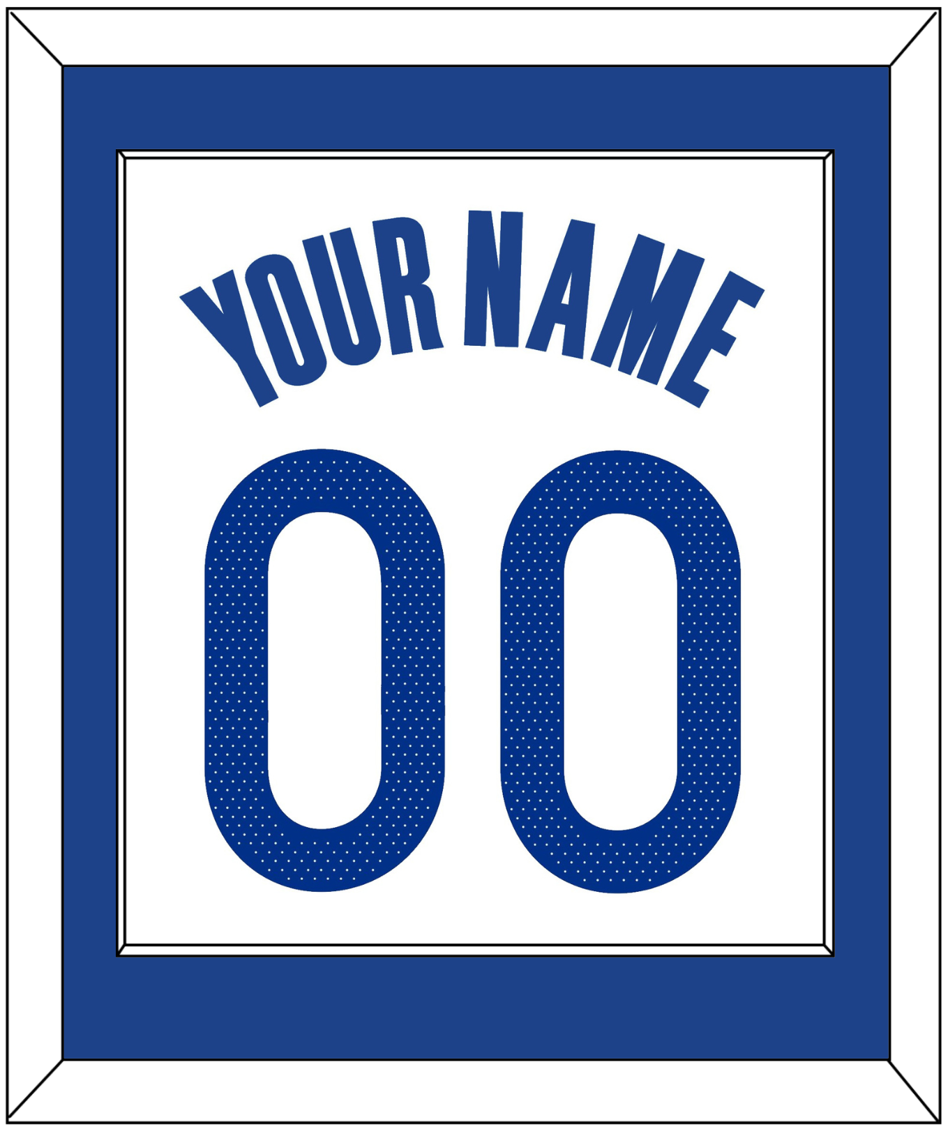Golden State White Association Jersey Name & Number. Single Mat: Blue Mat With Name And Blue Number Mounted On A White Mat. White Or Black Frame.