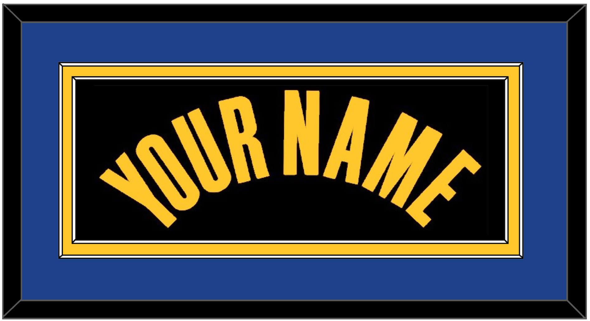 Golden State Black City Jersey (2021 Through 2022) Name. Double Mat: Blue Mat Over A Yellow Mat, Yellow Name Mounted On A Black Mat. White Or Black Frame.