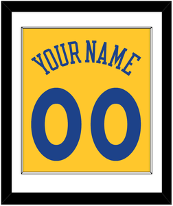 Golden State Alternate Yellow Jersey (2013) Name & Number. Single Mat: White Mat With Blue Name And Number Mounted On A Yellow Mat. Black Frame.