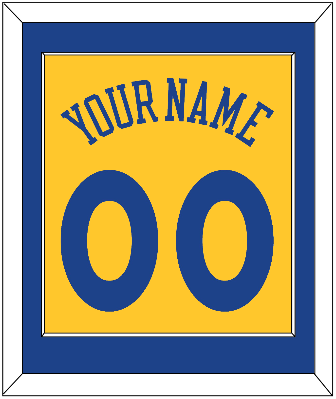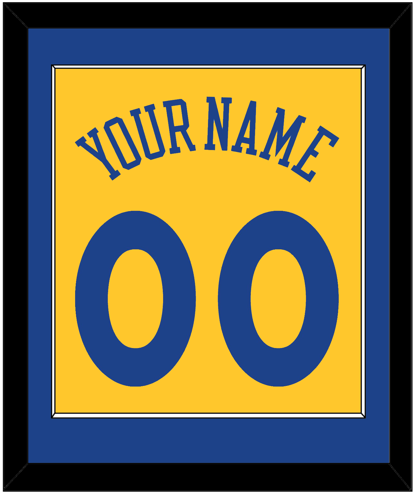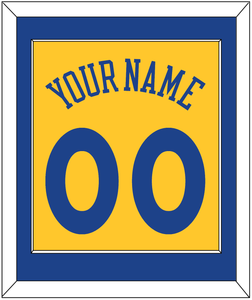 Golden State Alternate Yellow Jersey (2013) Name & Number. Single Mat: Blue Mat With Blue Name And Number Mounted On A Yellow Mat. White Or Black Frame.