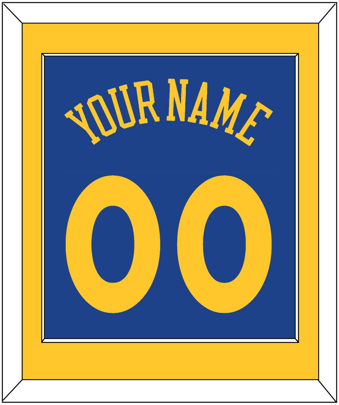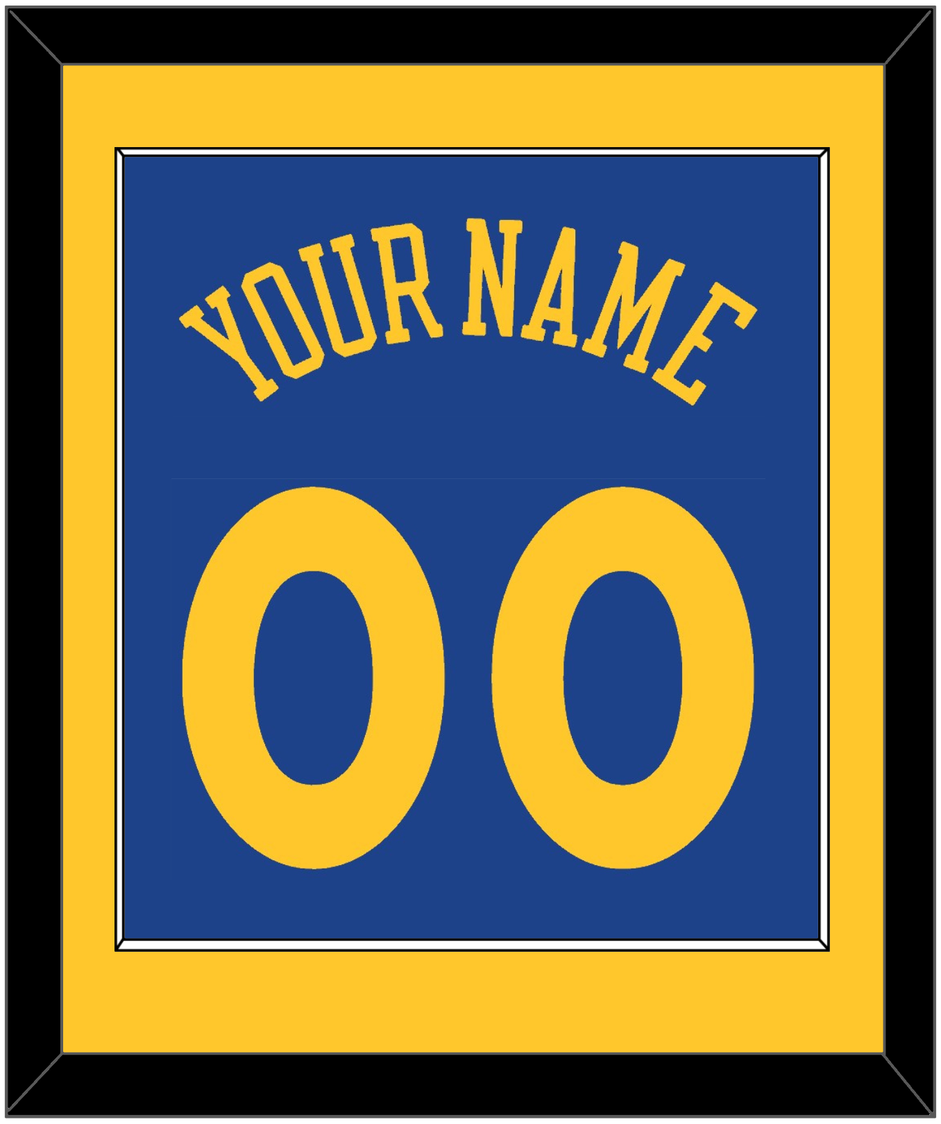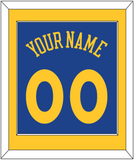 Golden State Road Blue Jersey (2010 Through 2019) Name & Number. Single Mat: Yellow Mat With Yellow Name And Number Mounted On A Blue Mat. White Or Black Frame.