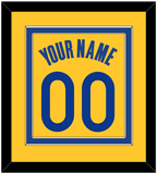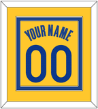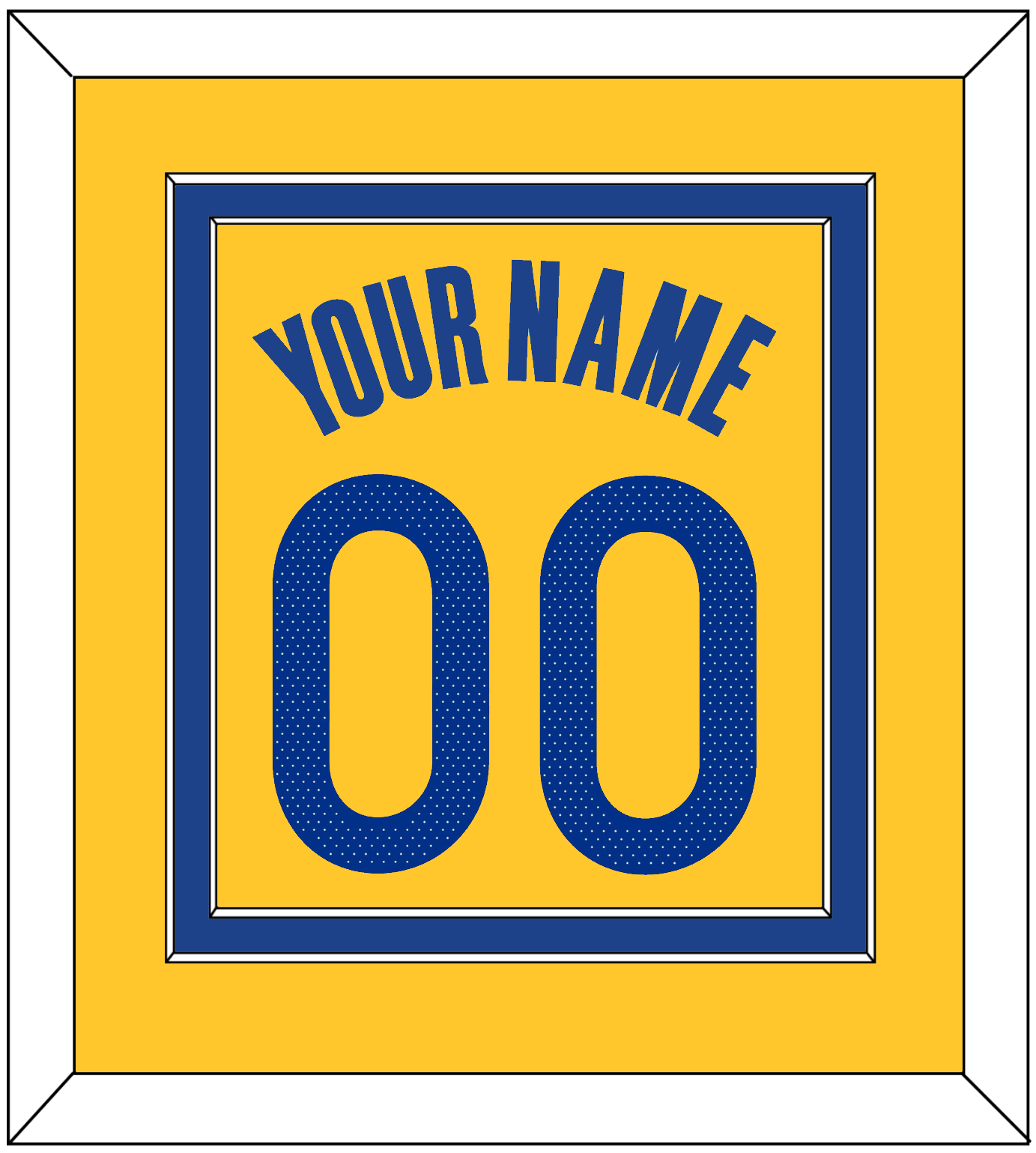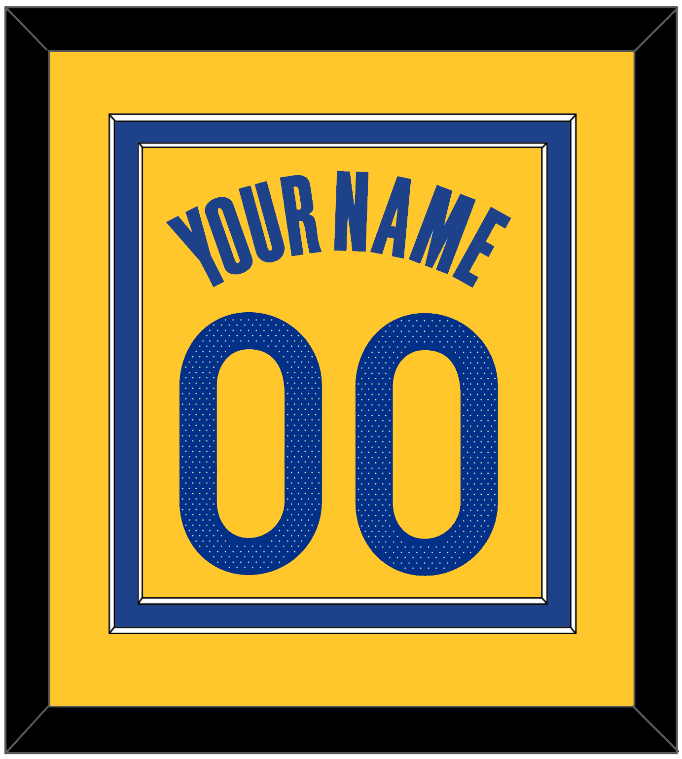 Golden State Yellow Statement Jersey (2019 Through 2022) Name & Number. Double Mat: Yellow Mat Over A Blue Mat. Blue Name And Number Mounted On A Yellow Mat. White Or Black Frame.