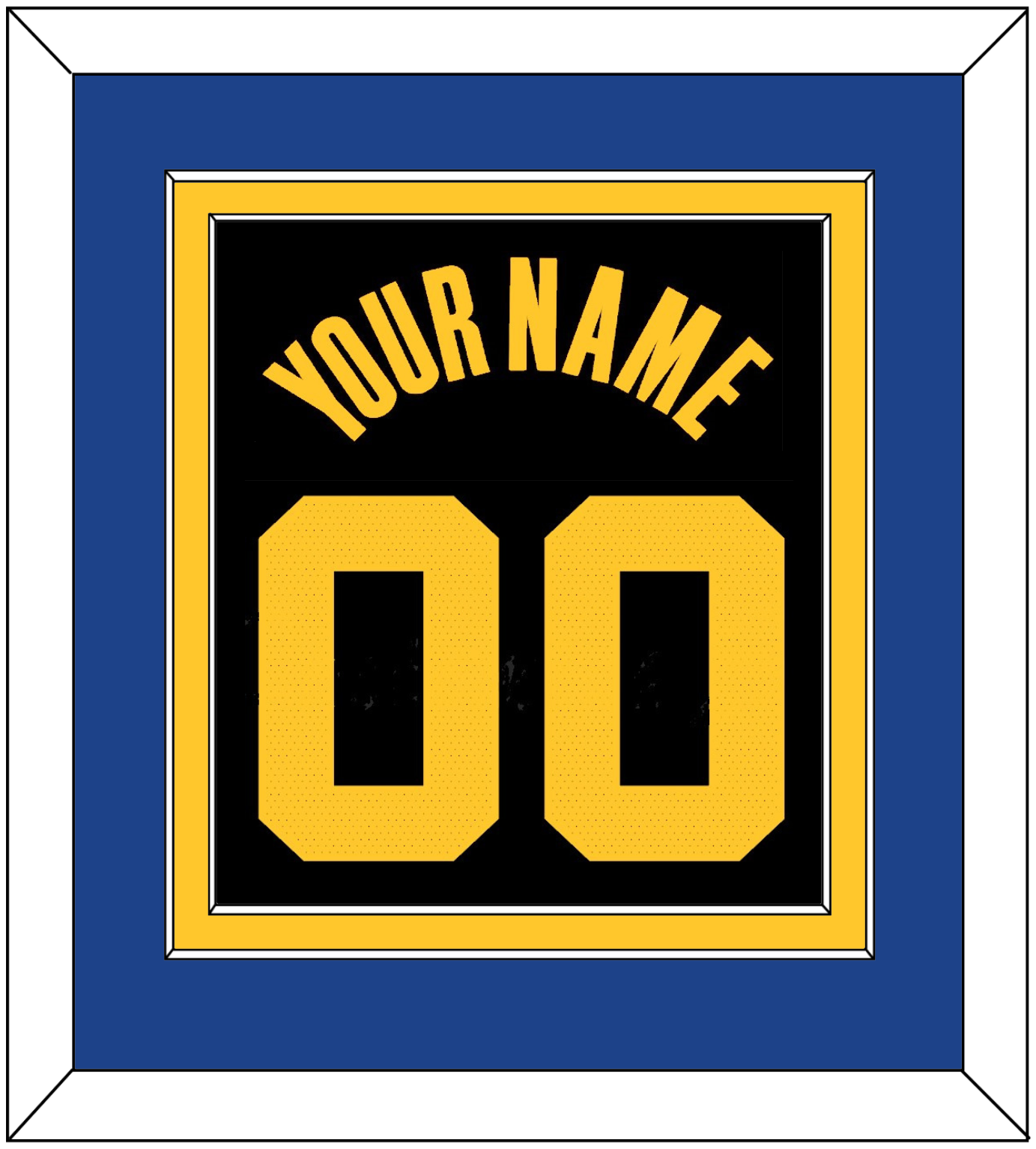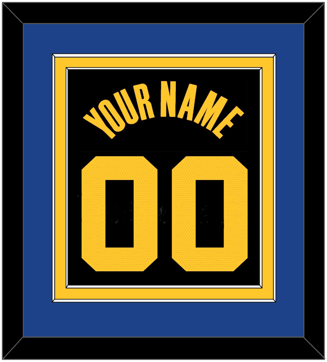 Golden State Black City Jersey (2021 Through 2022) Name & Number. Double Mat: Blue Mat Over A Yellow Mat. Yellow Name And Number Mounted On A Black Mat. White Or Black Frame.