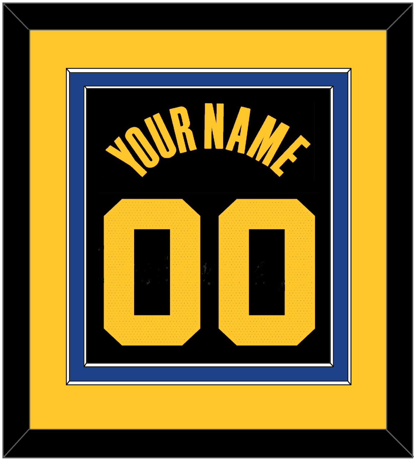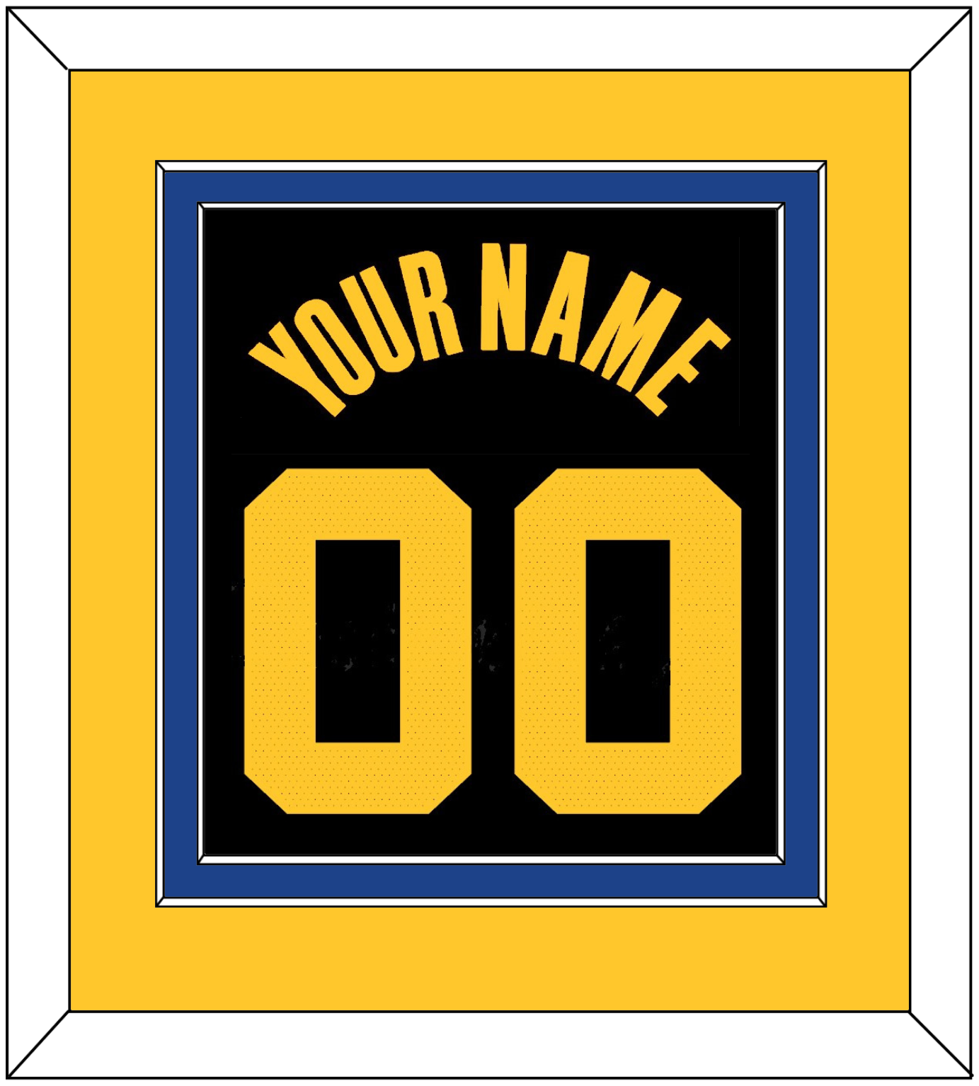 Golden State Black City Jersey (2021 Through 2022) Name & Number.   Double Mat:  Yellow Mat Over A Blue Mat.  Yellow Name And Number Mounted On A Black Mat.  White Or Black Frame.
