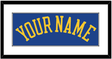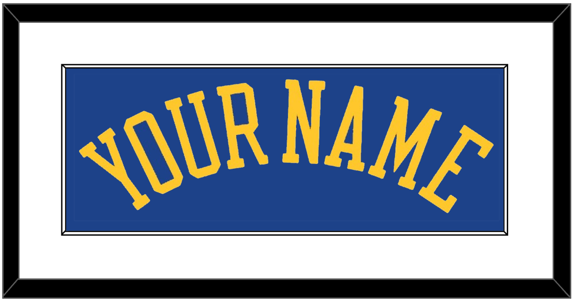 Golden State Road Blue Jersey (2010 Through 2019) Name. Single Mat: White Mat With Yellow Name Mounted On Blue Mat. Black Frame.