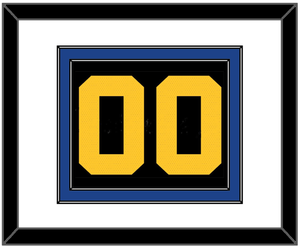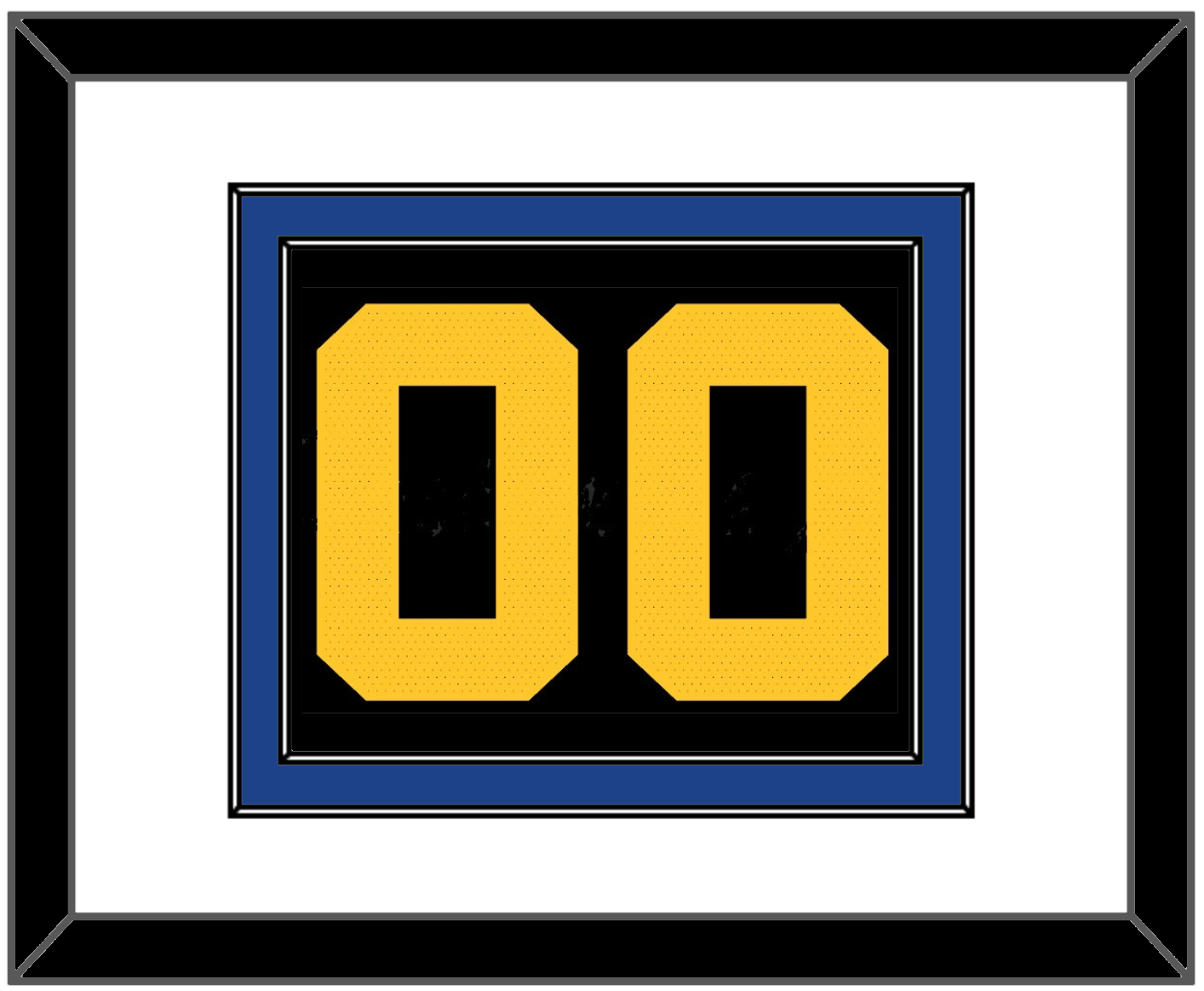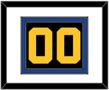 Golden State Black City Jersey (2021 Through 2022) Number. Double Mat Cut: White Mat Over A Blue Mat. Yellow Number Mounted On A Black Mat. Black Frame.